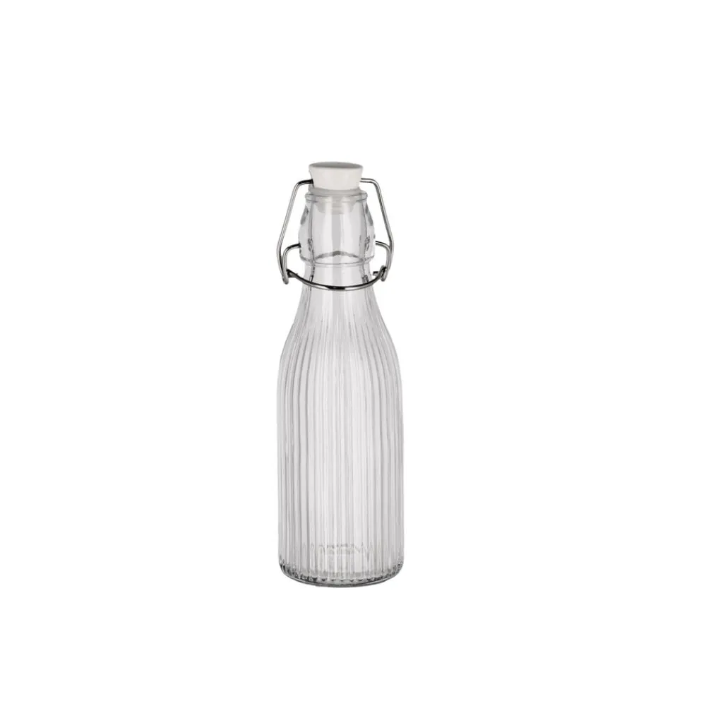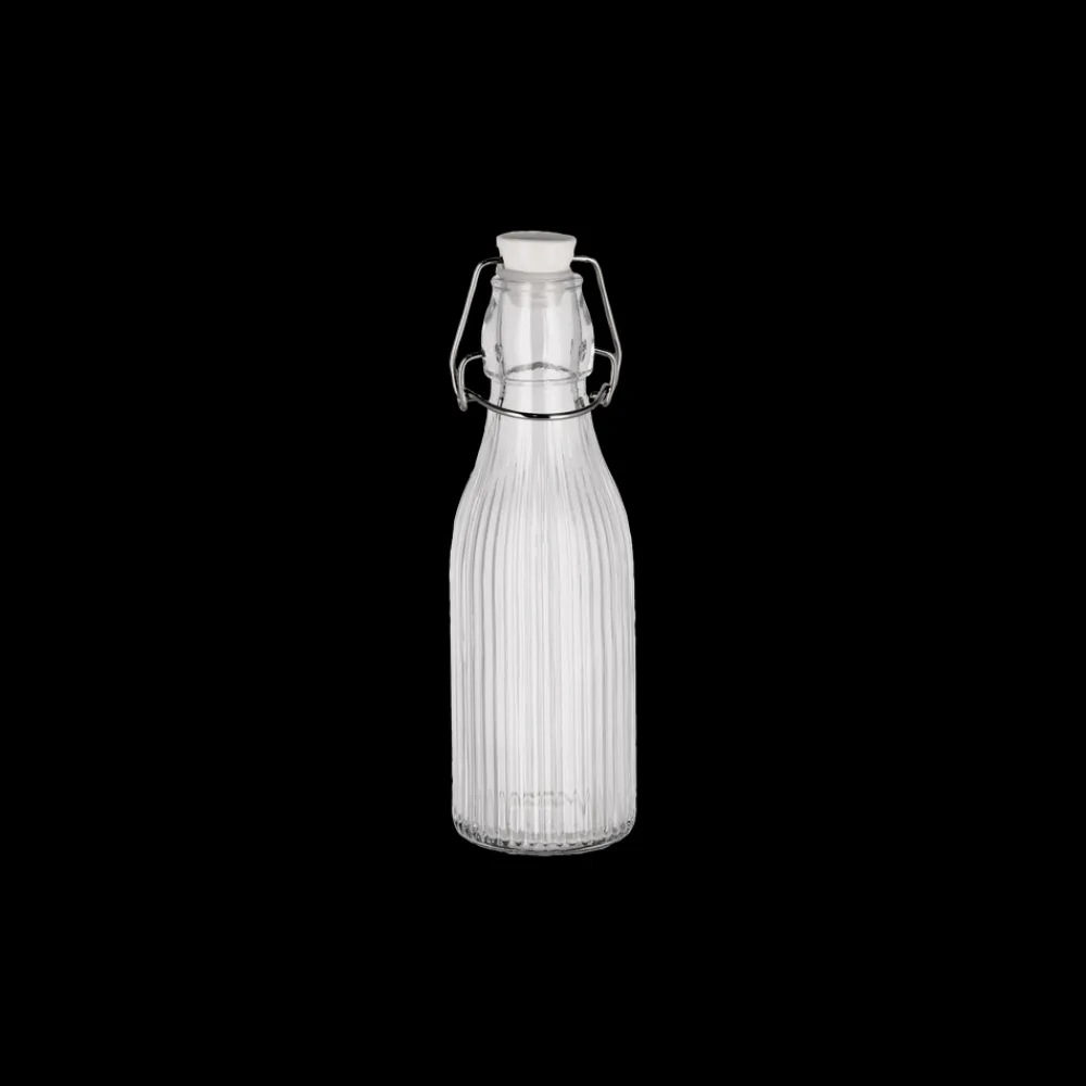 Riflet glasflaske med patentlukning. Porcelænslåg med silikonering og lås af rustfrit stål.