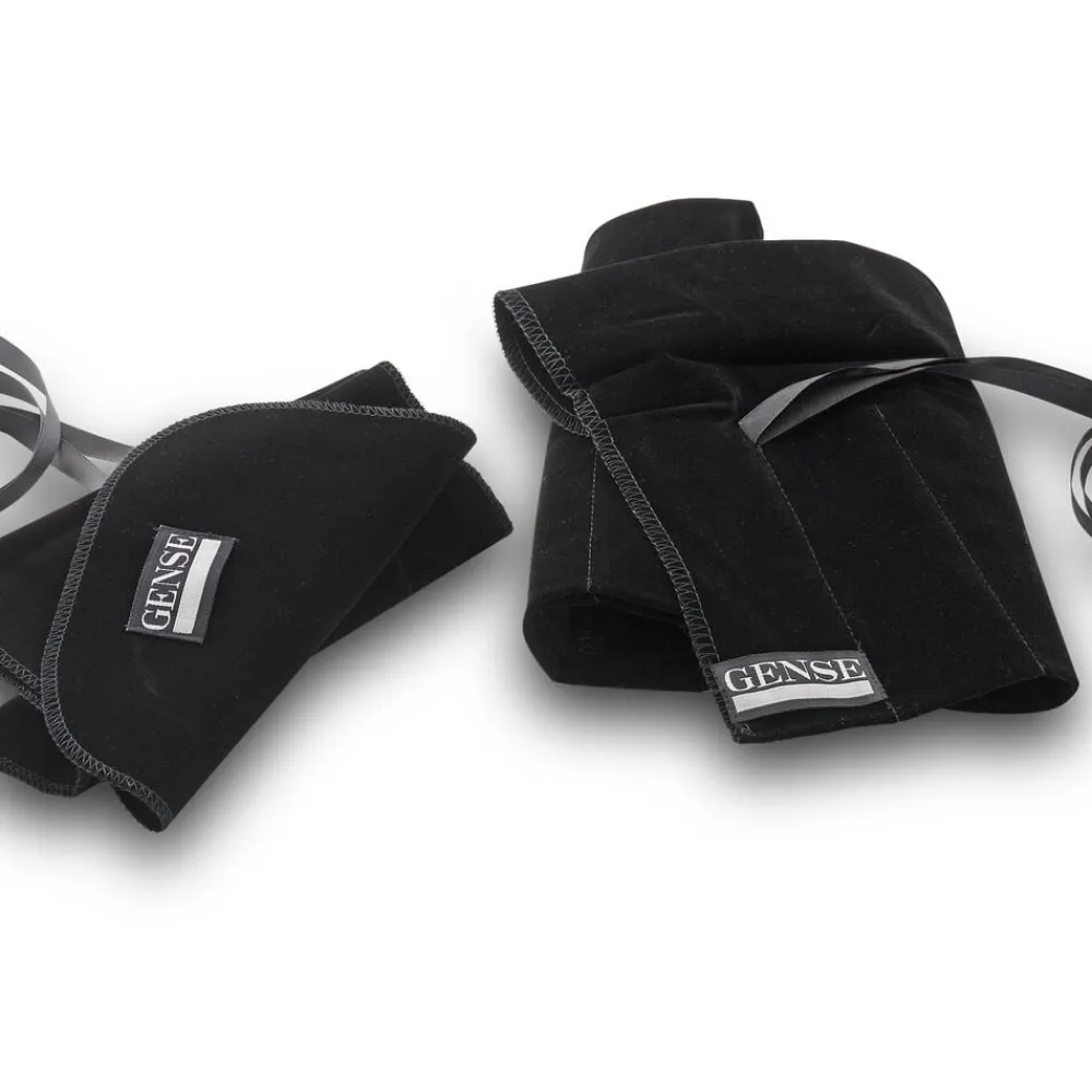 Bestikpose til 12 dele udført i sort kvalitetsklæde med hvidt Gense-logo og sort stofbånd til lukning.