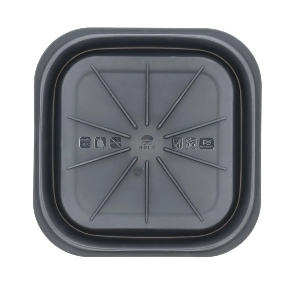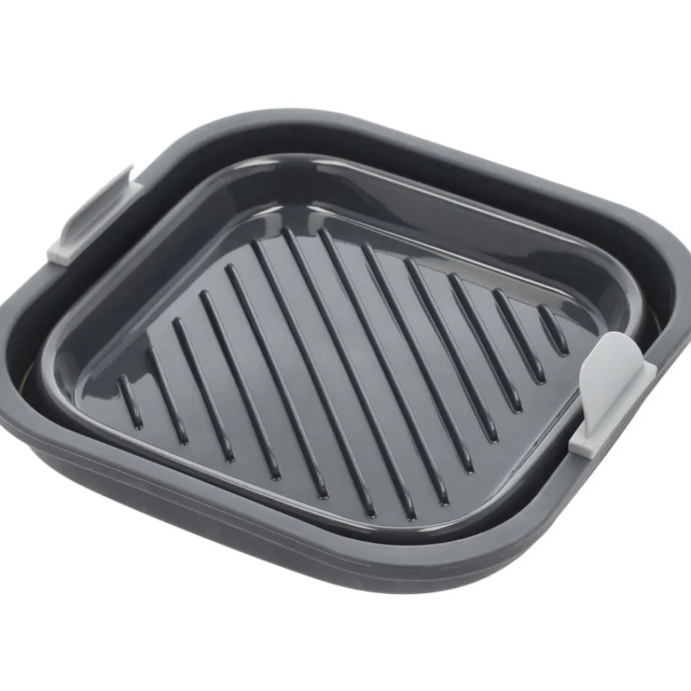 Den firkantede silikoneform passer perfekt i din airfryer. Du undgår klistrede og fastbrændte madrester i airfryeren, og silikoneformen er nem at vaske i hånden eller i opvaskemaskinen. Formen er 6 cm høj og kan foldes sammen, så den fylder minimalt ved opbevaring. Tåler ovn op til 220 grader.