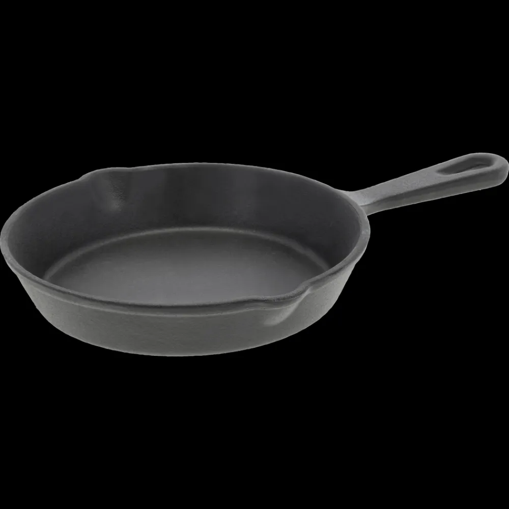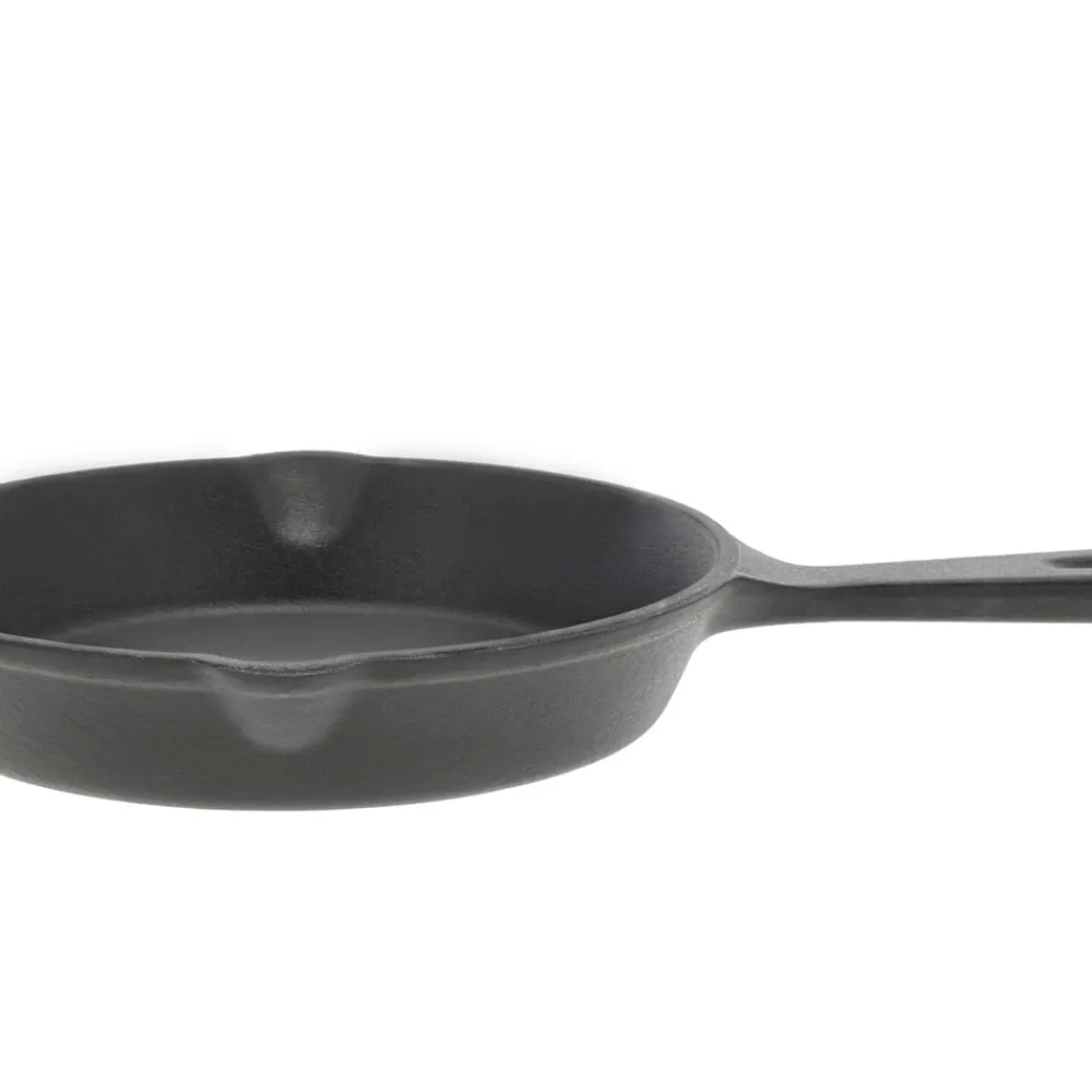 Ministegepande, dia. 14 cm, fremstillet i oliebehandlet støbejern. Oliebehandlingen lægger bunden til en naturlig belægning, som giver gode stegeegenskaber, og støbejernet fastholder og fordeler varmen jævnt og effektivt.