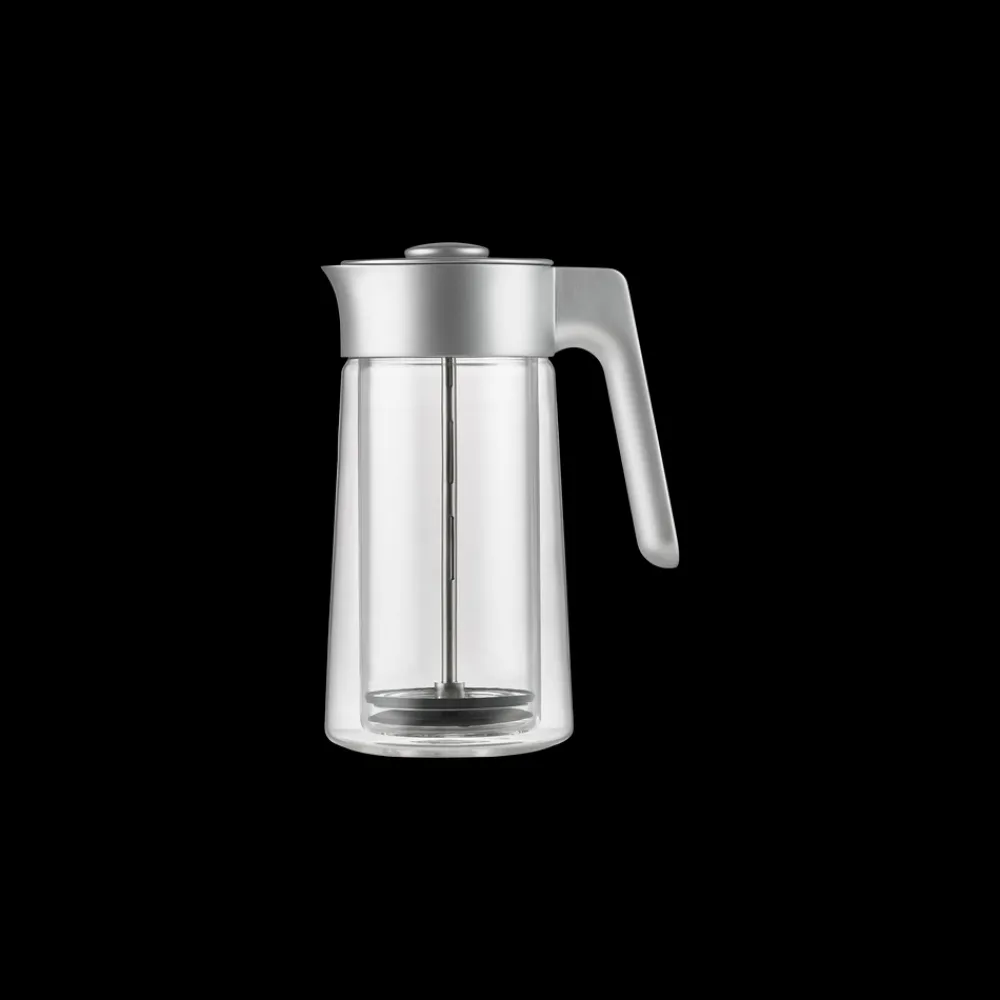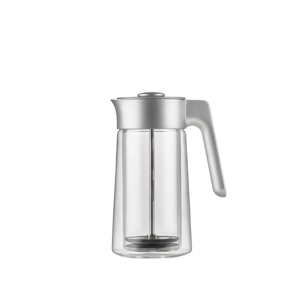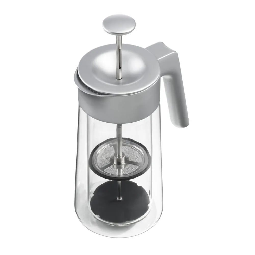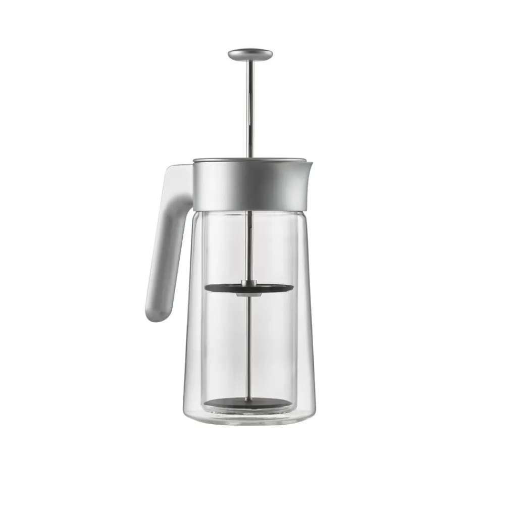 Jacob Jensen Coffee Press med CoffeeCatcher™ gør din daglige kafferutine enklere. I stedet for at efterlade den brugte kaffegrums i bunden af din Coffee Press samles grumset oven på CoffeeCatcher™. Dette gør det nemt at fjerne grumset og efterlader Coffee Press ren og klar til næste brygning. Den dobbeltvæggede konstruktion sørger for, at kaffen holder den perfekte temperatur og beskytter dine hænder mod varmen fra glasset. Coffee Pressen rummer 6 til 8 kopper.