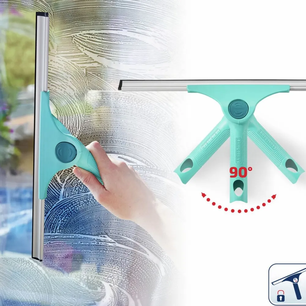Vindueskraber på 40 cm med bevægeligt led og låsemekanisme på håndtaget. Hovedet kan drejes ca. 90 grader til hver side og gør det nemt at fjerne vand – også i bølgede bevægelser. Skraberen er udstyret med en udskiftelig gummiliste. 3 års garanti.