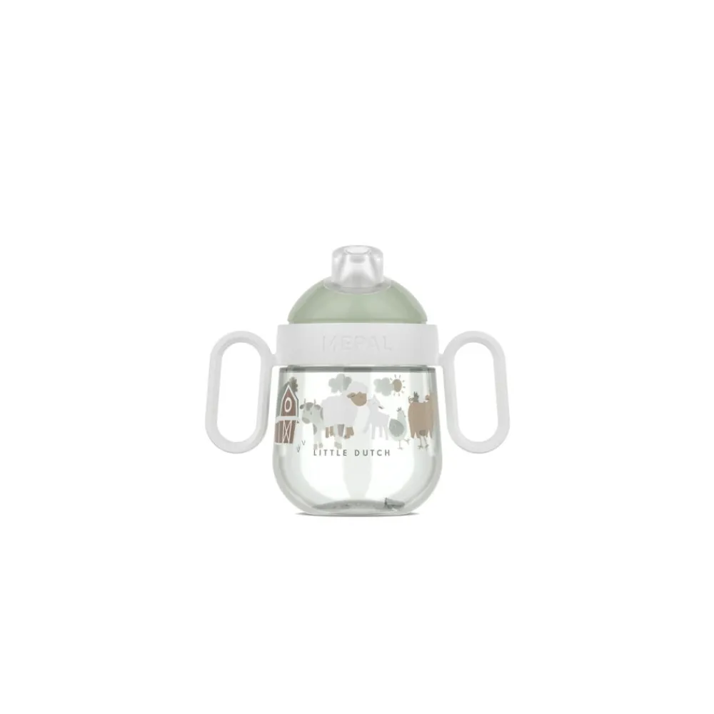 Mio Babykrus non drip har ekstra kort tud, der giver en sundere udvikling af munden og tænderne. Det har to drikkeåbninger, og de store håndtag gør kruset lettere at holde med små hænder. 100 % lækagesikker, væsken kommer kun ud, når barnet suger af tuden.