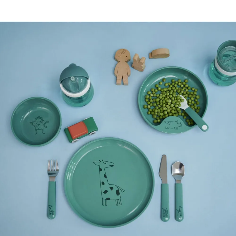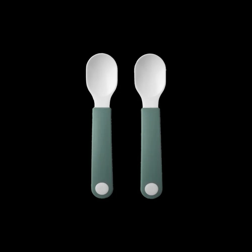 Smart og robust Mio Begynderske med godt greb i det korte håndtag til barnet, der har lært at spise selv. Sættet indeholder to skeer, der kan vaskes i opvaskemaskine. PP og TPE.