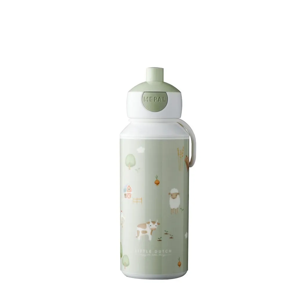 Mepal drikkeflaske med Little Farm-motiv. Den kendte, robuste drikkeflaske rummer 400 ml, har praktisk silikonestrop og et smart pop-up system med mundstykke, der nemt udløses ved tryk på en knap og samtidig er let at skille ad og rengøre.