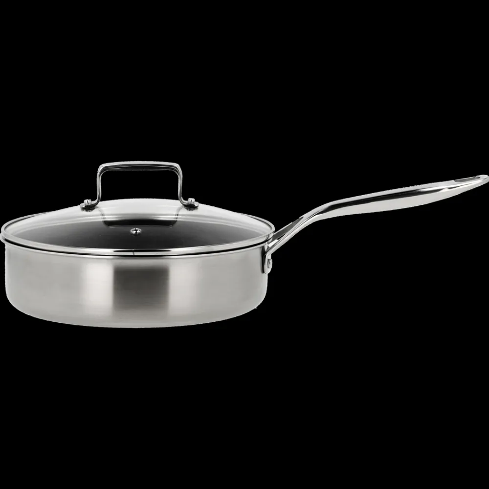 79Nord Hybrid er fremstillet af 3-ply rustfrit stål. Konstruktionen af to lag stål med et aluminiumlag imellem betyder, at varmen fordeles hurtigt og fastholdes jævnt og energieffektivt over både bund og sider, og samtidig er materialet let. Vær forsigtig ved opvarmning – varm gryder og pander langsomt op og undgå at overophede. Udvendigt er gryder og pander satinpolerede, indvendigt har de en innovativ hybridbelægning.