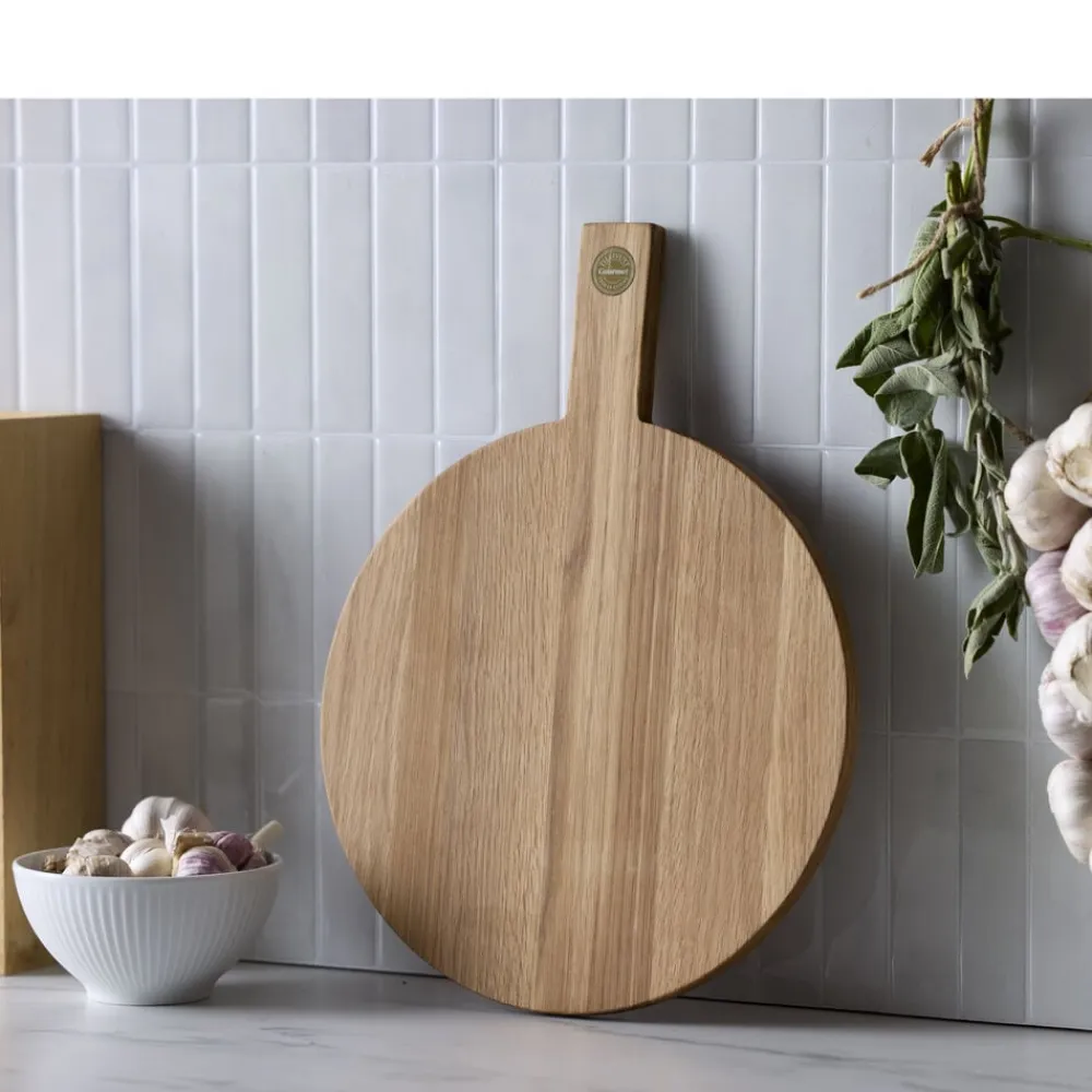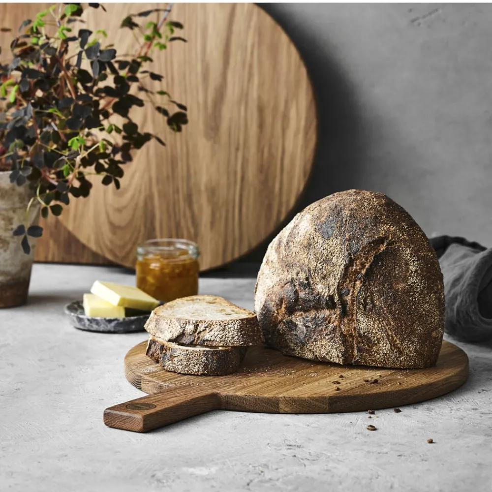 Et godt skærebræt-/serveringsbræt er uundværligt i køkkenet – og endnu bedre, når det også kan bruges til at servere på. Det har en levende struktur og en varm glød, der passer ind i ethvert køkken. Brug brættet til anretning af tapas, brød eller snacks – eller lad det stå fremme og pynte, når det ikke er i brug. Varen er produceret i FSC®-certificeret egetræ (FSC-C166612).