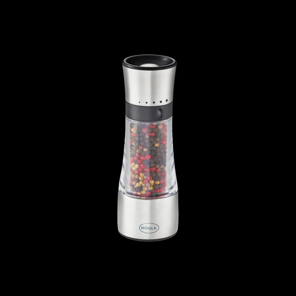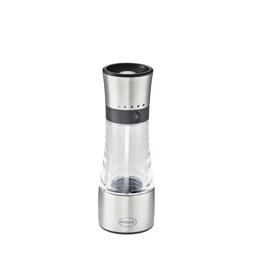 Robust krydderikværn til groft salt, peber og alle slags tørre krydderier. Huset er af rustfrit stål og glas, og det keramiske kværnværk kan justeres fra meget fint til groft i 5 indstillinger. Kværnen er let at genopfylde.