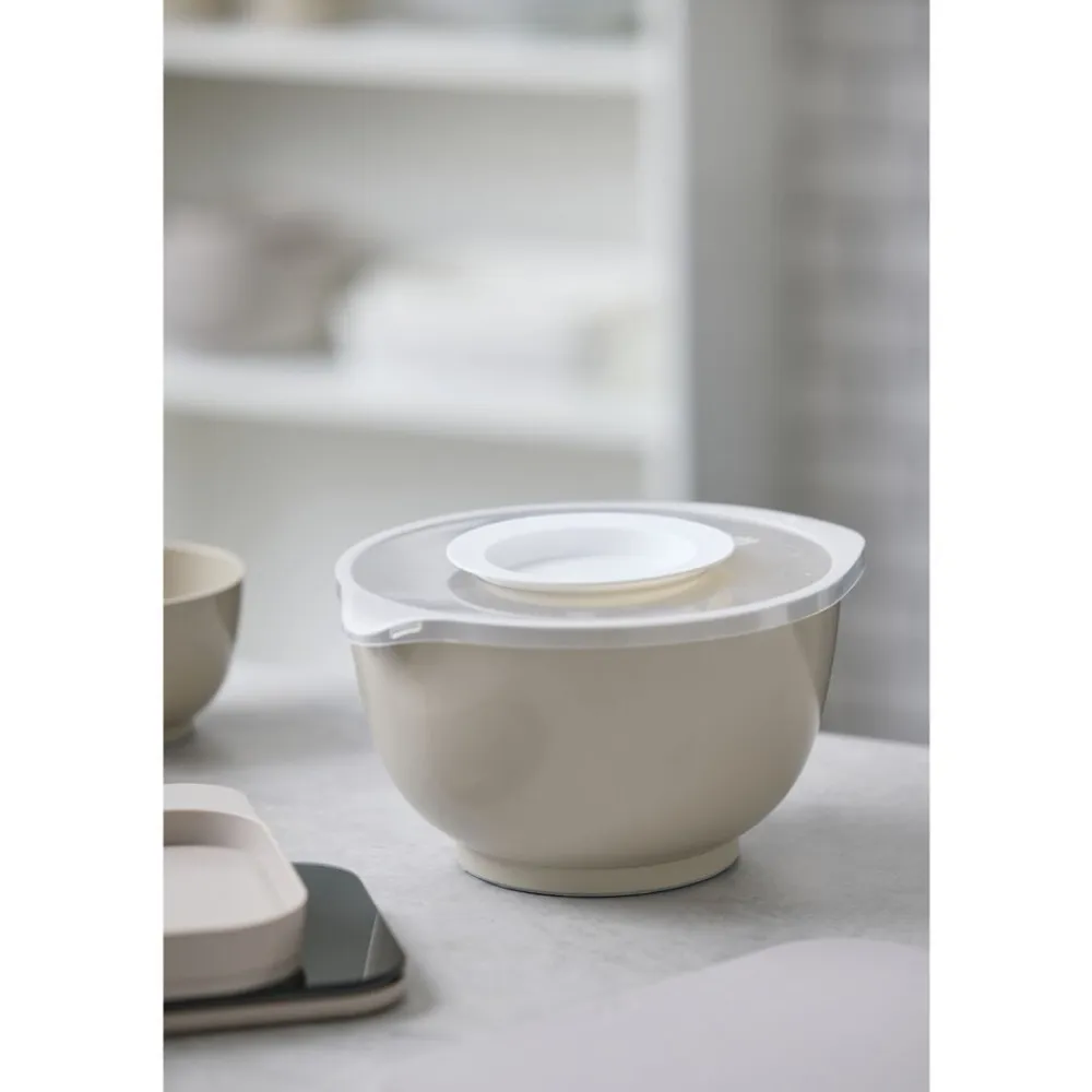 Piskelåg til 3 ltr. Margrethe-skål (dog med undtagelse af stålskålene og porcelænskålene). Det lille låg i midten kan afmonteres, så låget kan bruges som piskelåg – eller man kan lade det sidde, så det kan bruges som et almindelig låg. 5 års garanti.