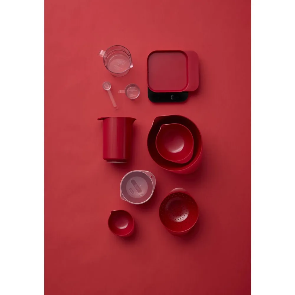 Mensura betyder ’at måle’ på latin, og formålet med Mensura-serien er netop at måle hurtigt og præcist. Det flotte design hjælper dig godt på vej, idet alle produkter er udformet med en markering midtpå, der opdeler i en halv/en hel liter på målekanden, en halv/en hel deciliter på målebægeret og teske/spiseske på måleskeen. Udformningen gør samtidig produkterne lette at stable.