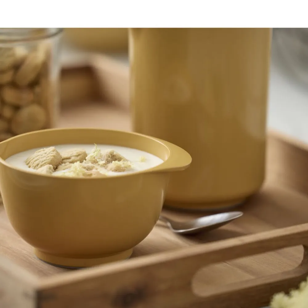 Margrethe-skålen er den klassiske røreskål med det gode greb, den praktiske hældetud og den skridsikre bundring. Den nye version af Margrethe-skålen er fremstillet af plastmaterialet Durostima®. Skålen er nu endnu stærkere og mere brudsikker, og med det nye materiale kan den også tåle mikroovn og fryser. Margrethe-skålen er velegnet til såvel tilberedning som servering, og tilkøbes der låg, er røreskålen omdannet til en praktisk opbevaringsskål. 5 års garanti.