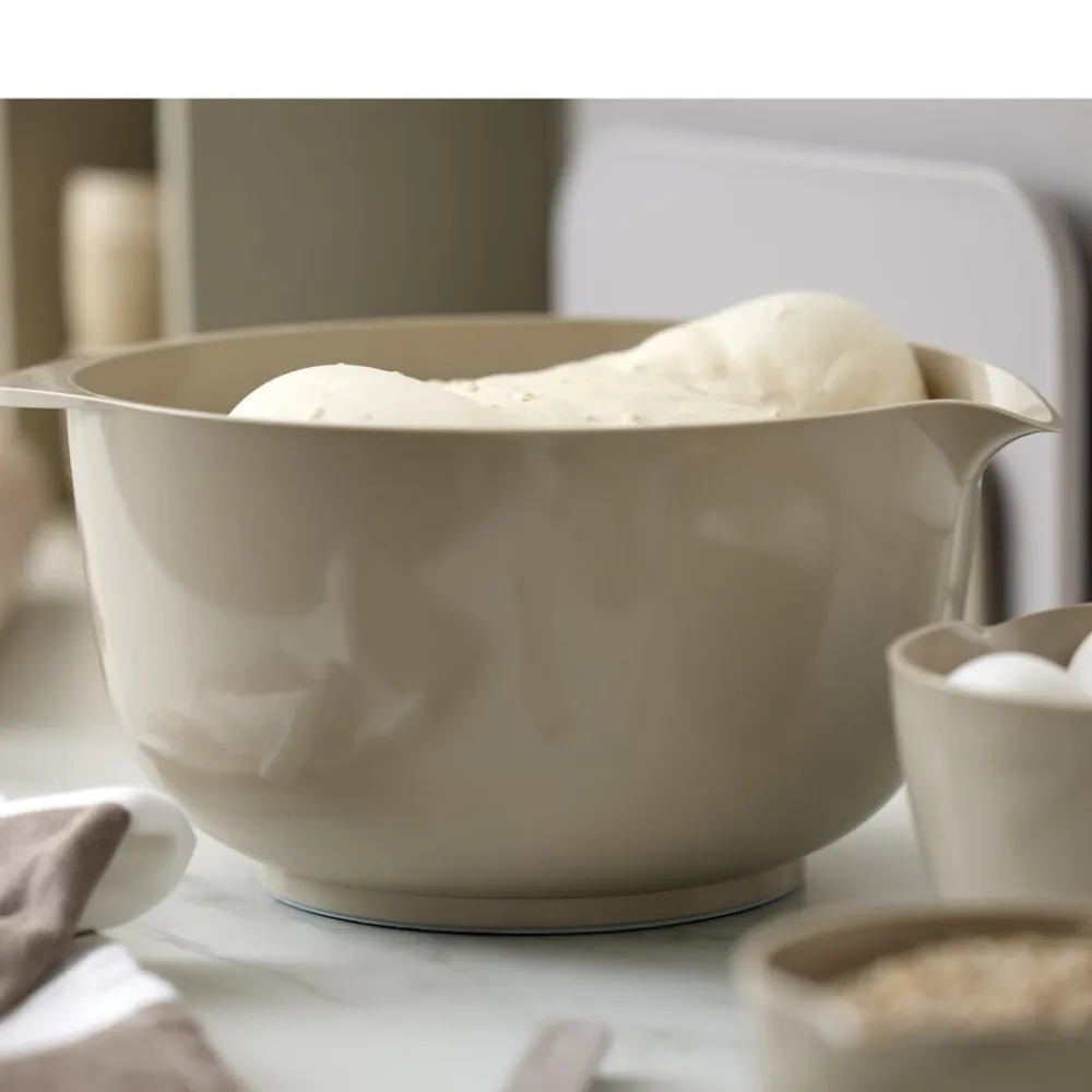 Margrethe-skålen er den klassiske røreskål med det gode greb, den praktiske hældetud og den skridsikre bundring. Den nye version af Margrethe-skålen er fremstillet af plastmaterialet Durostima®. Skålen er nu endnu stærkere og mere brudsikker, og med det nye materiale kan den også tåle mikroovn og fryser. Margrethe-skålen er velegnet til såvel tilberedning som servering, og tilkøbes der låg, er røreskålen omdannet til en praktisk opbevaringsskål. 5 års garanti.