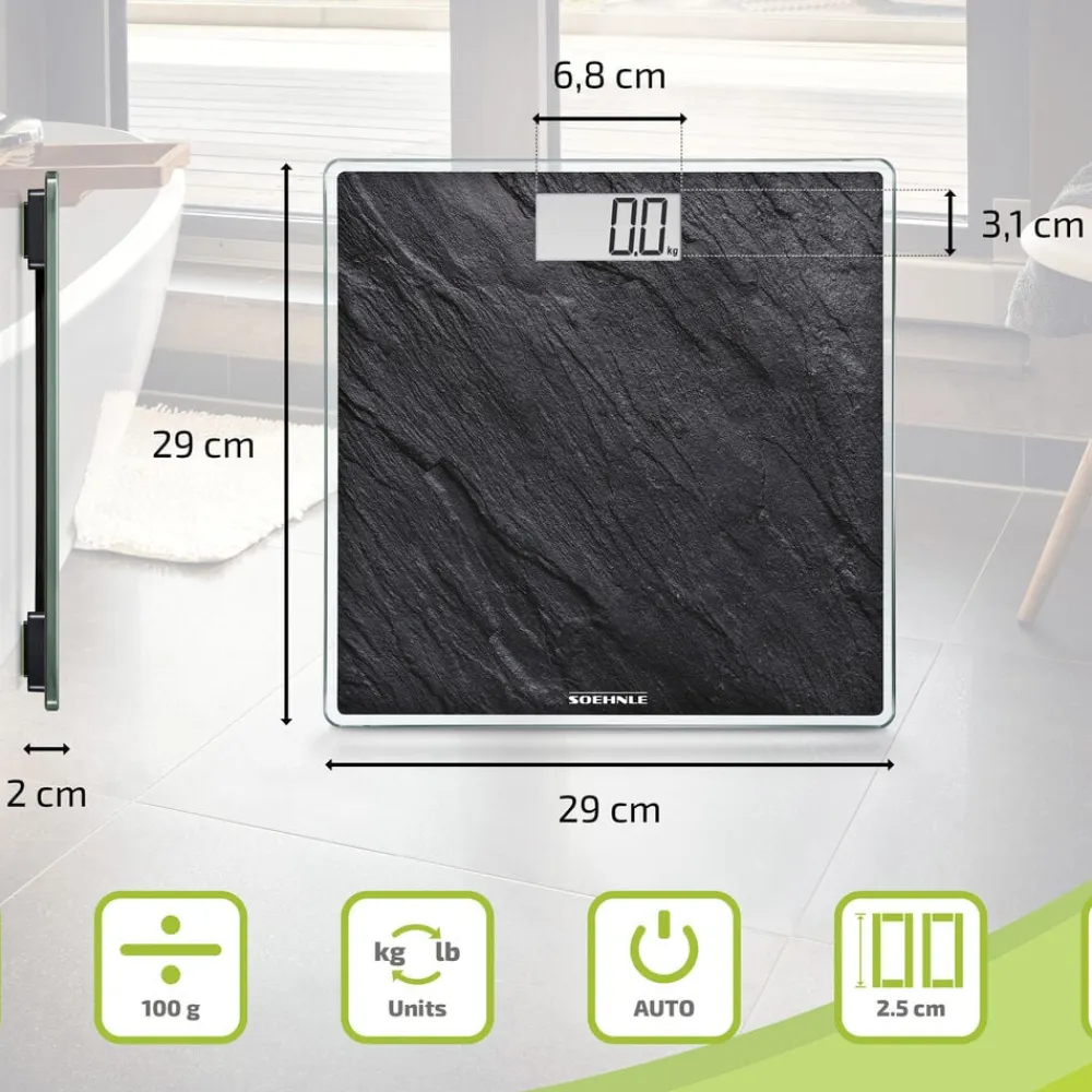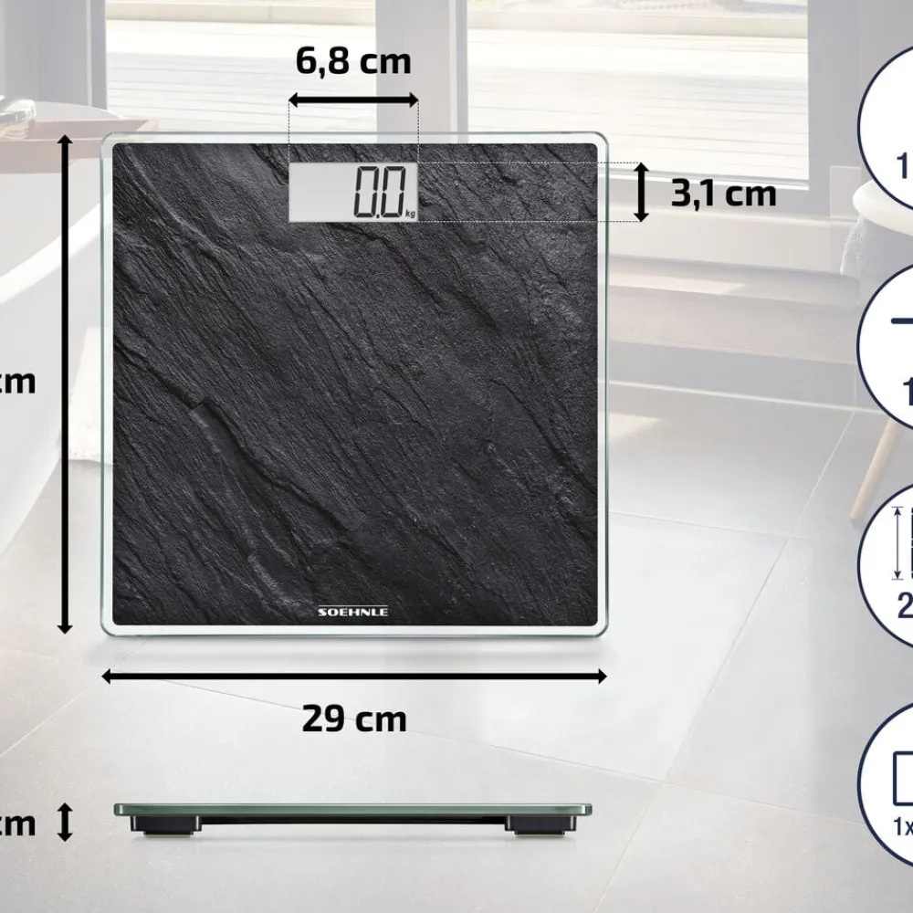 Style Sense Compact 300 er en stabil personvægt med en robust platform i 8 mm sikkerhedsglas. Vægten tænder automatisk, så snart du træder op, og slukker igen, når du er færdig. Vejer op til 180 kg med interval på 100 g, som giver et nøjagtigt resultat. Du kan frit vælge, om du vil aflæse vægten i kg, lb eller st, som nemt kan aflæses på den store LCD-skærm med tydelige tal.