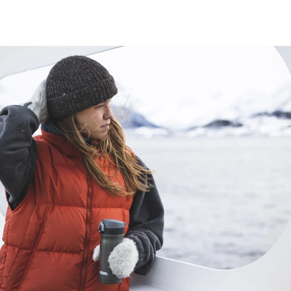 Thermos JMY 350 ml er en smart blanding af en lille termoflaske og en termokop fremstillet i rustfrit stål med et drikkelåg. Kan bruges til både til kolde og varme drikke. Holder indholdet varmt i op til 9 timer og koldt i op til 24 timer.