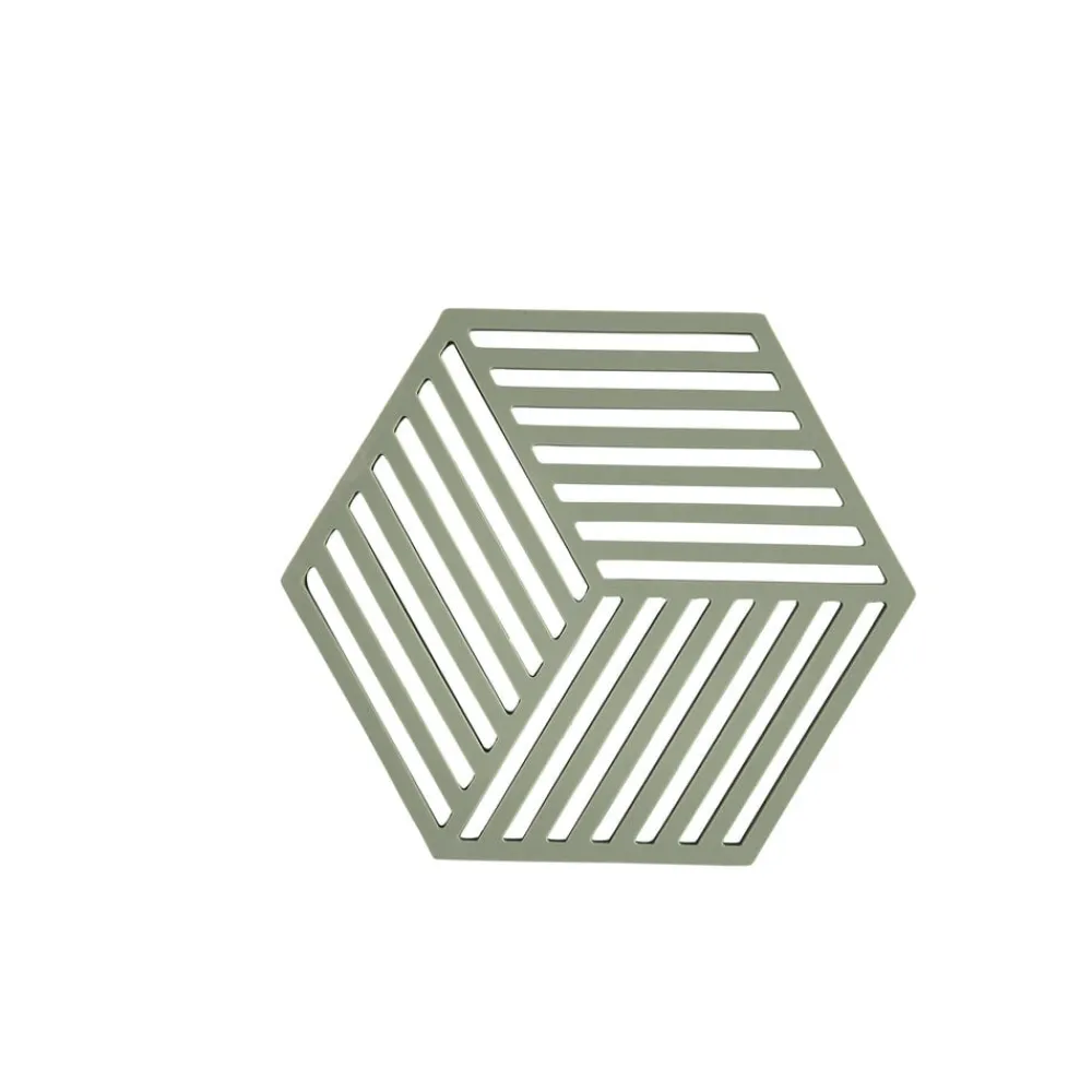 Hexagon bordskånerne i silikone er så grafisk dekorative, at de indbyder til at lægge en flok ud i hele bordets længde uden at stille noget på dem. De er varmebestandige op til 250 °C og kan vaskes i opvaskemaskine. 16 x 14 x 0,9 cm.