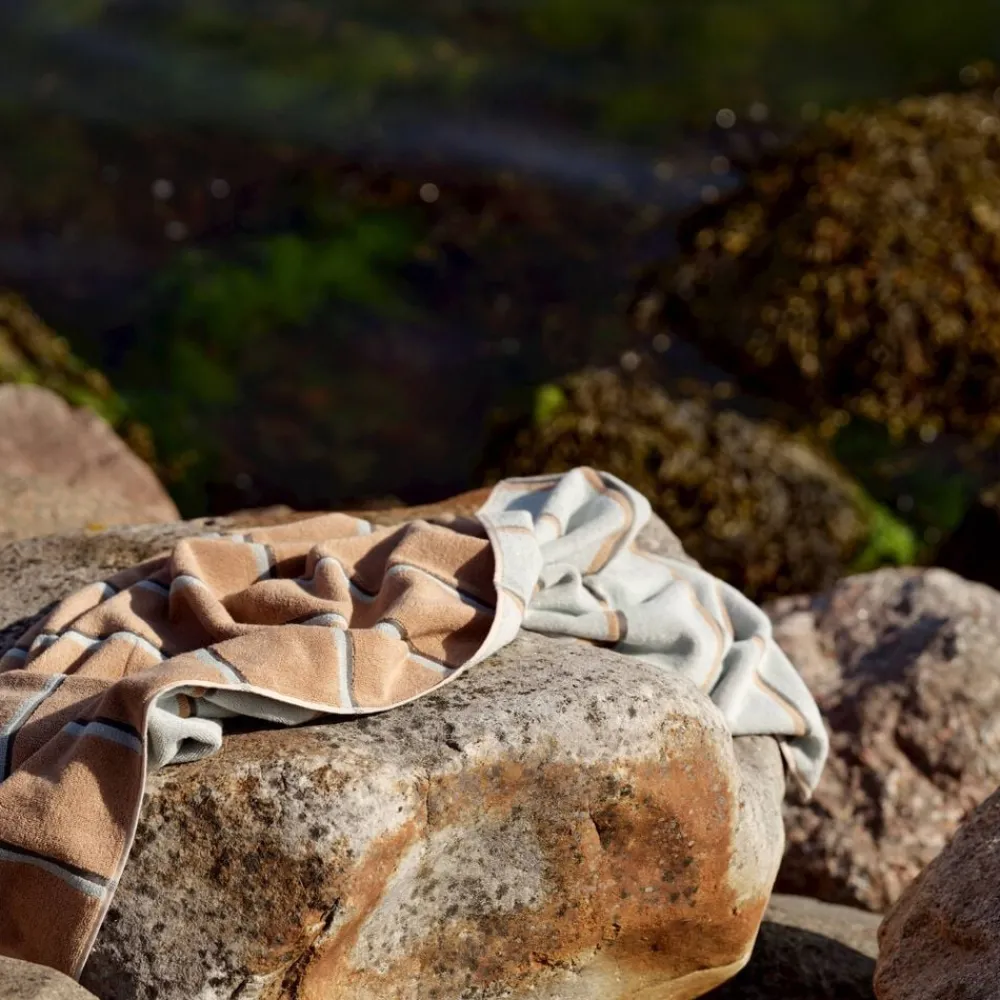 De retroinspirerede striber tilføjer et grafisk, urbant touch, og med en blød, kraftig kvalitet i garnfarvet 600 grams bomuld, føles håndklædet lige så lækkert, som det ser ud.