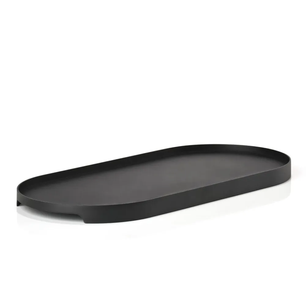 Oval bakke, der både bærer, samler og pynter. Brug den til kaffen eller snack til børnene. Saml dine olier og eddiker på køkkenbordet. Eller sæt den på badeværelset med duftlys og dine yndlingsparfumer. 35 x 16 x 1,8 cm.