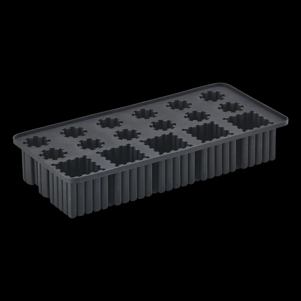 Med Singles isterningebakken kan du imponere med drinks, der ikke bare er vidunderligt kolde, men også uimodståeligt smukke. Isterningerne har et stilrent art deco-udtryk, der får drinken til at stå skarpt og indbydende. Bakken er udført i silikone, der sikrer, at isterningerne let glider ud. Takket være den diskrete kant er bakkerne nemme at stable stabilt i fryseren. En god gaveide til cocktail-connaisseuren, livsnyderen og alle andre, der elsker kolde forfriskninger.