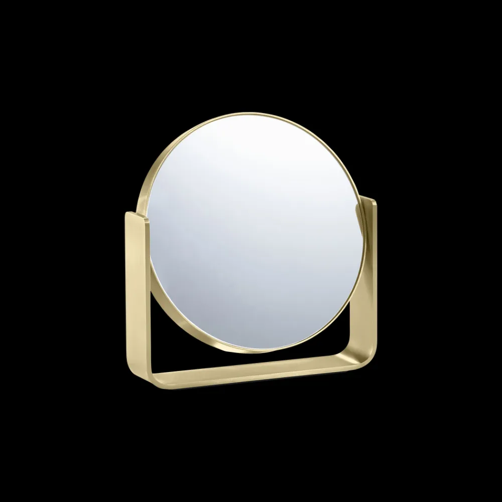 Til bordet findes både sæbedispenser, sæbeskål samt tandbørstekrus samt rundt bordspejl med vippefunktion.