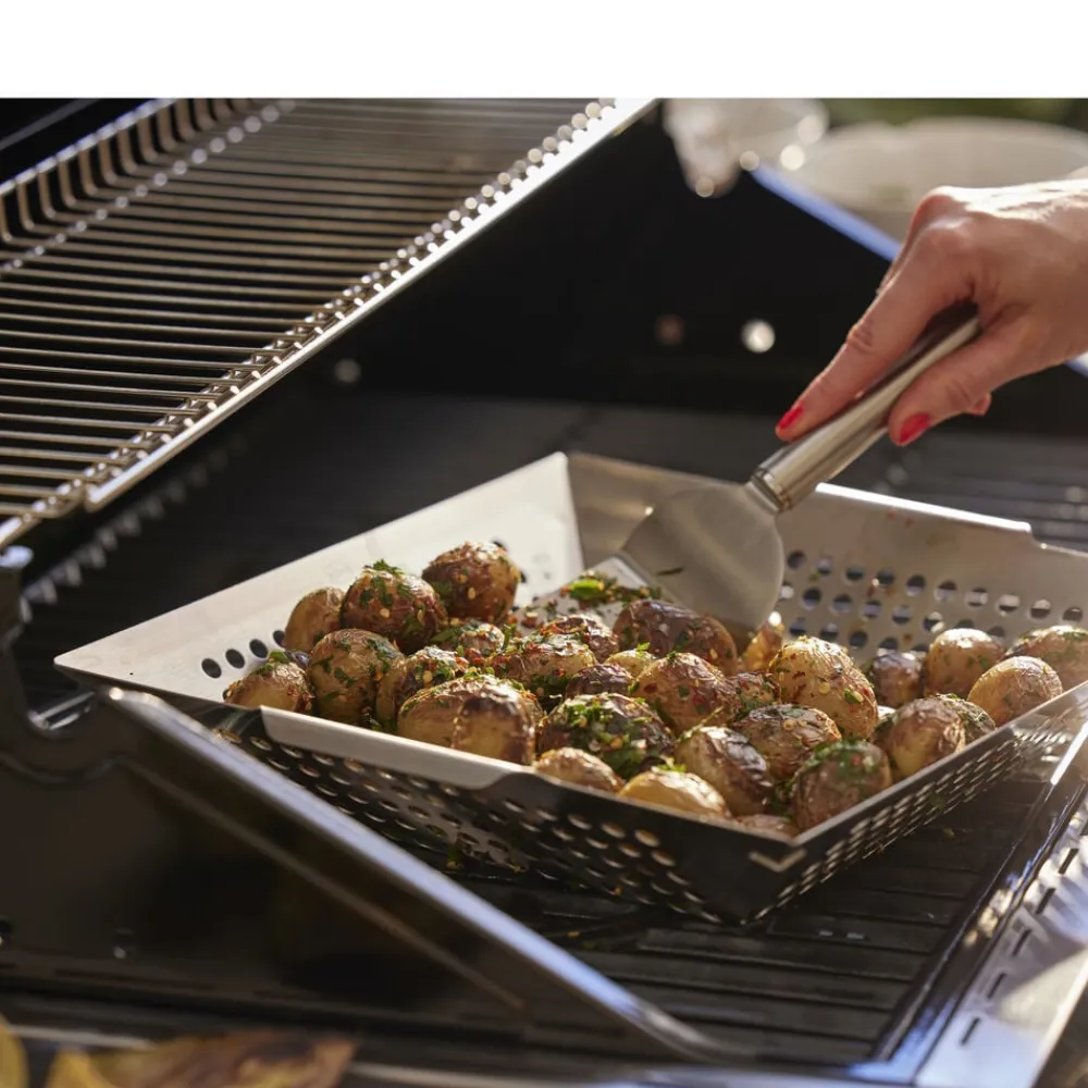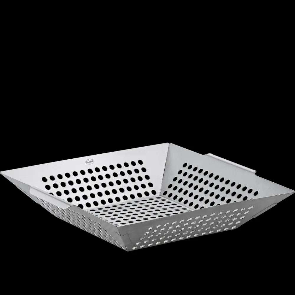 Grillbakken er ideel til grillning af skårne grøntsager, frugt eller kød og til tilberedning af varme kastanjer. Lavet af perforeret rustfri stålplade til direkte varmeoverførsel til den mad, der skal grilles. To håndtag giver et sikkert greb med grillhandsker. Til brug på grillen og i ovnen.