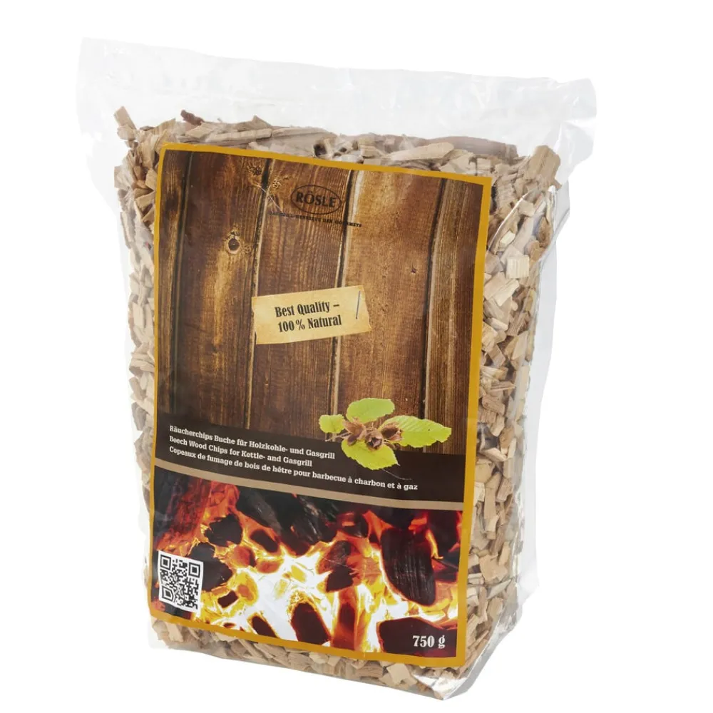 Røgspåner af 100 % naturligt, ubehandlet træ. Bøgearoma er ideel til fisk, men også vildt, svinekød, oksekød og skinke. Giver en stærk røgsmag. Fås også i andre 3 varianter: æble, hickory og kirsebær. Meget røgintensiv, og derfor anbefales korte rygetider. Ingen kemikalier tilsat, ingen bark. Tilføjer en aromatisk røgsmag svarende til amerikansk grillsmag.