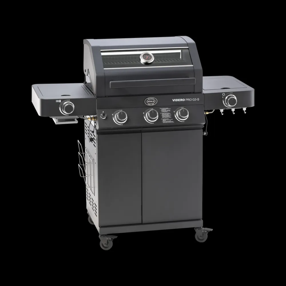 Rösle Videro Pro G3-S Vario+ i mat sort med mange funktioner. 3 hovedbrændere af rustfrit stål (hver 3,5 kW). Hovedgrillområde: 60 x 45 cm, opvarmningsstativ: 60 x 16 cm. Kraftige grillriste af emaljeret støbejern giver de klassiske grillstriber. Det unikke og fleksible Vario+ grillsystem giver mange anvendelsesmuligheder: Grillen indeholder tre riste, hvoraf den runde kan fjernes og erstattes af en pizzasten (23937), en grillplade (24145), en gryde (24404) eller en wok (24143), som kommer tæt på varmekilden og derved kan opnå høj varme. Den smarte holder gør det nemt at opbevare pizzasten og grillplade. Der fås også et cover (varenr. 23916) og et rotisseri (varenr. 23930) til Rösle Videro Pro G3-S gasgrill, som kan tilkøbes separat.