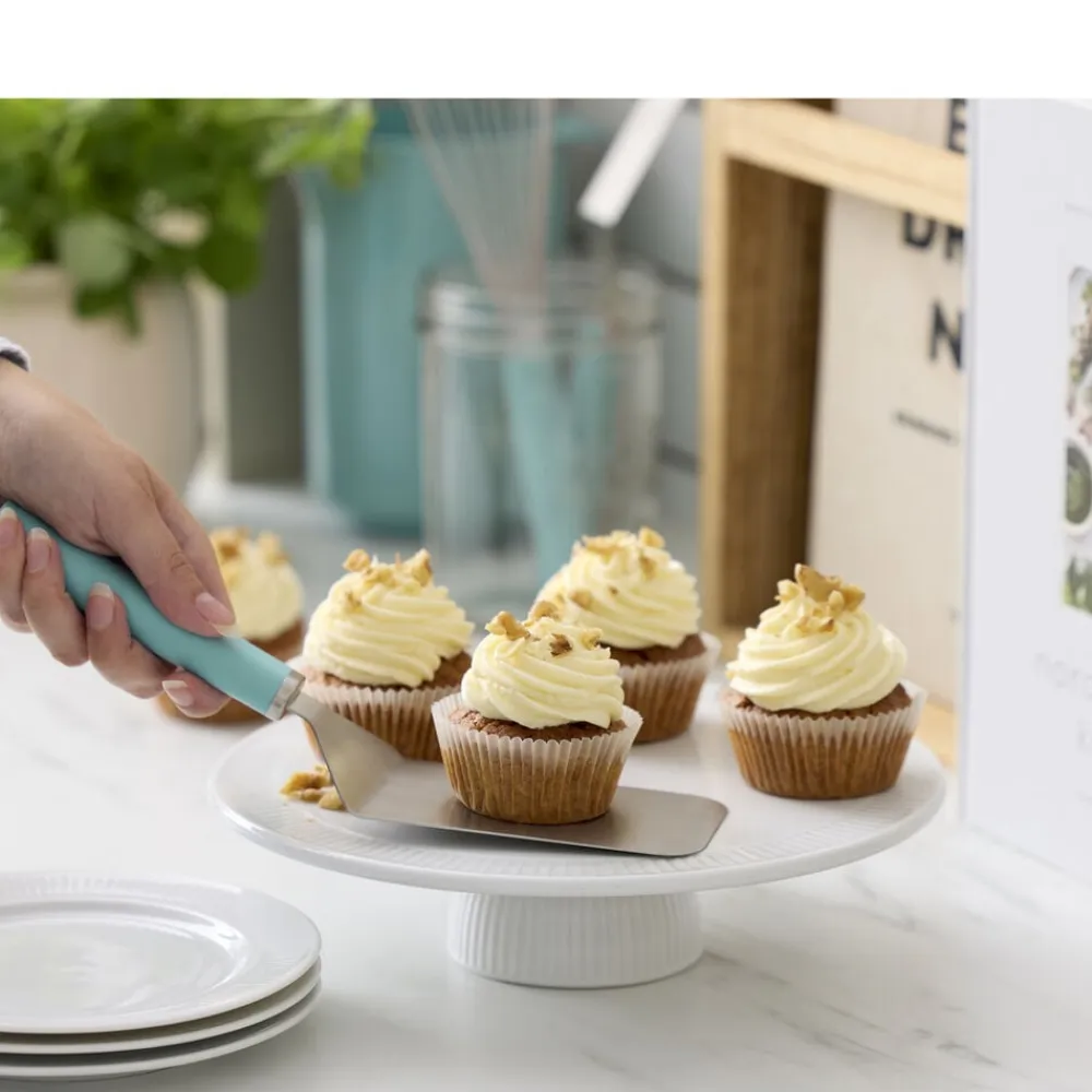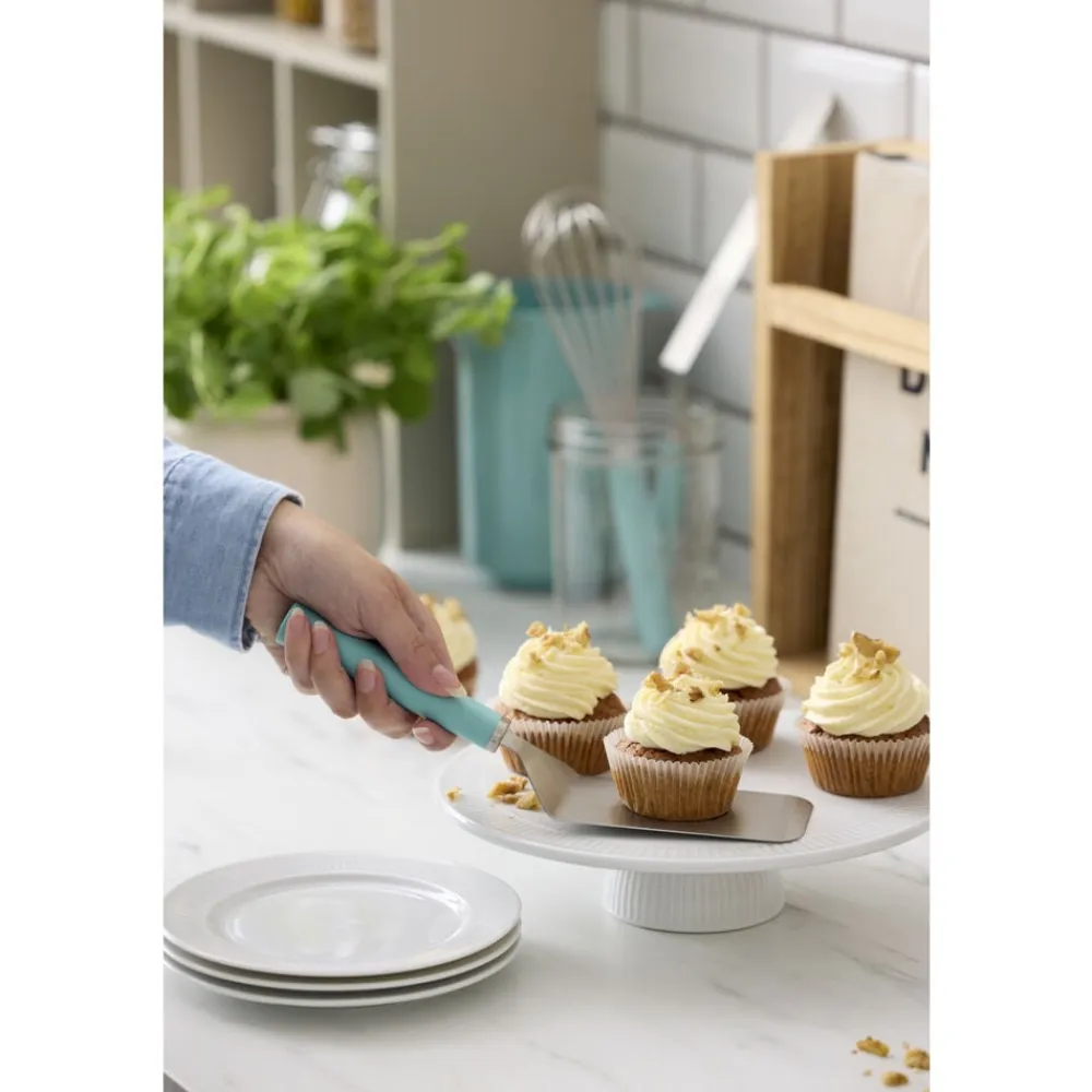 Den brede palet er alsidig og brugervenlig. Hvad enten du løfter småkager fra bagepladen eller vender bøffer på panden, glider det fleksible blad nemt ind under maden. Paletten med det ergonomiske håndtag kan bruges til mange forskellige opgaver ved madlavning og bagning og er et musthave for enhver madentusiast. Velegnet til opvaskemaskine.