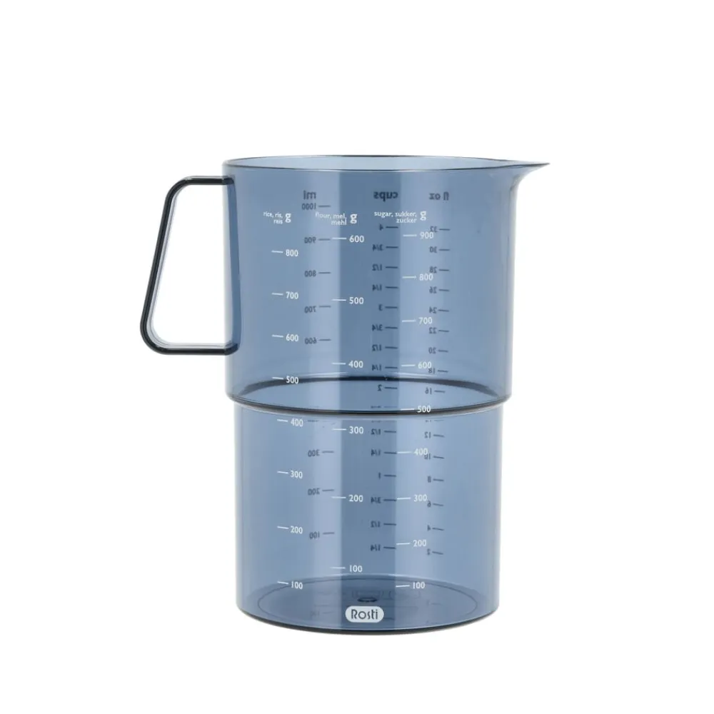 Mensura målekanden tåler kogende vand, rummer 1 liter og har en tydelig opdeling midtpå, så det er nemt at aflæse en halv liter. Desuden har kanden tydelige måleindikatorer for ml, cups og fl oz samt for mel, ris og sukker. Kanden har tud og kraftigt håndtag.