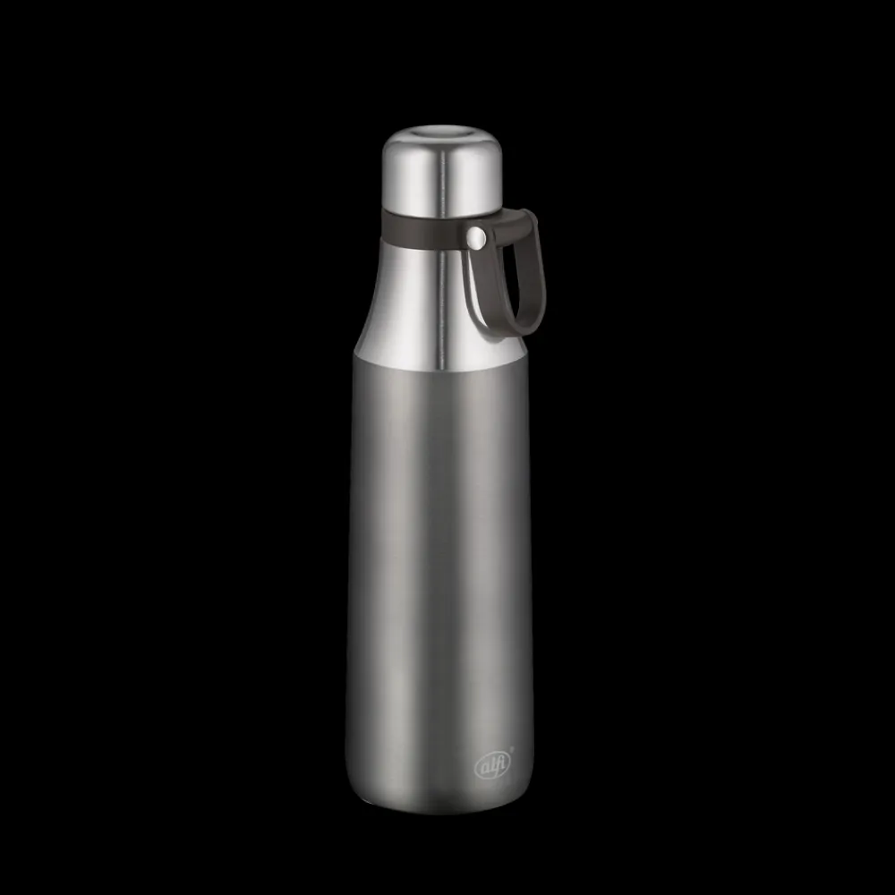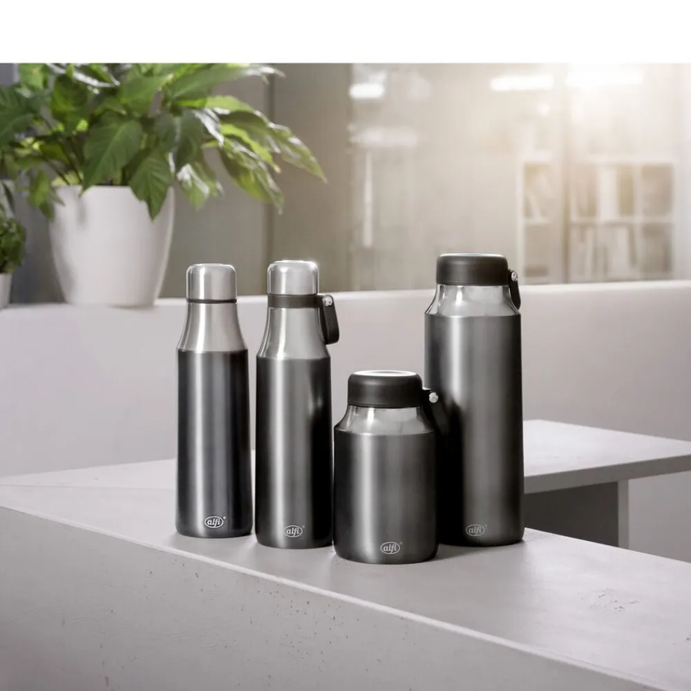 City drikkeflaske i originalt Alfi-design, der er perfekt at tage med på farten. Drikkeflasken er lavet af robust, dobbeltvægget rustfrit stål med låg i høj kvalitet og praktisk bærehank. Holder varmt i op til 8 timer og koldt i op til 16 timer. Holder fuldstændigt tæt selv med kuldioxidholdig væske. Fri for BPA. Tåler opvaskemaskine. Modstandsdygtig overflade takket være colourProtect™ – slag- og brudsikkert design. Holdbar og genbrugelig. Godt alternativ til engangsplastflasker.
