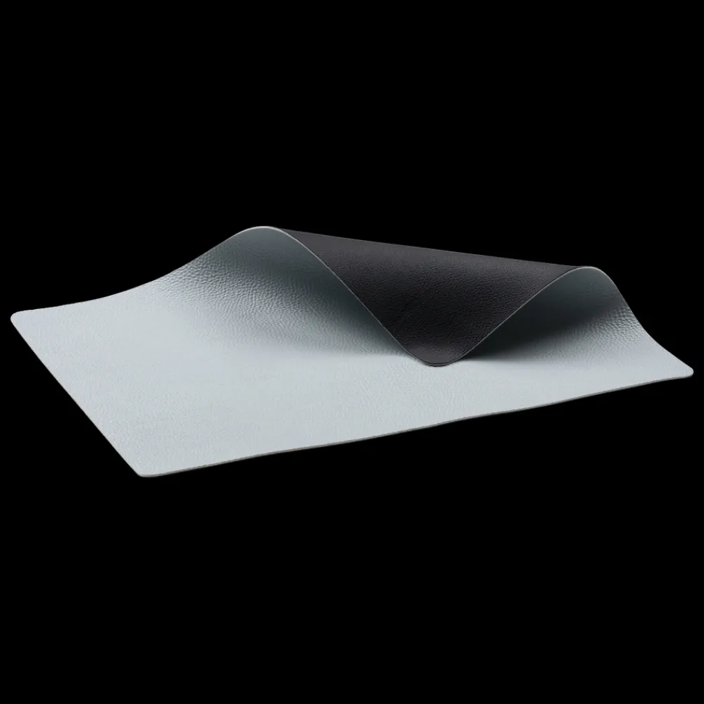 Vendbare dækkeservietter i praktisk vaskbart læderlook giver borddækningen et råt og moderne udtryk. Sort/Lyseblå.