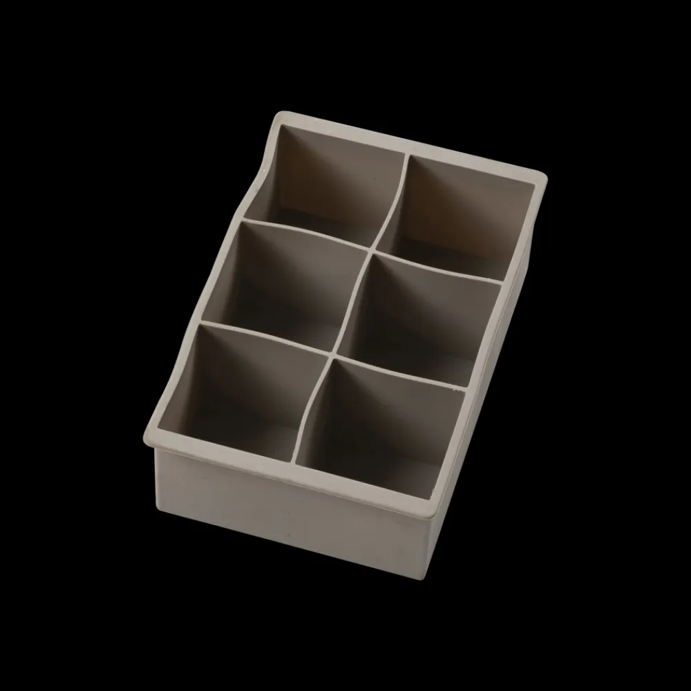 Isterningbakke i silikone til 6 ekstra store terninger, som holder drinken kold i længere tid. Terningerne måler 5 x 5 cm, og den fleksible silikone gør det nemt at få dem ud af formen. Velegnet til opvaskemaskine.