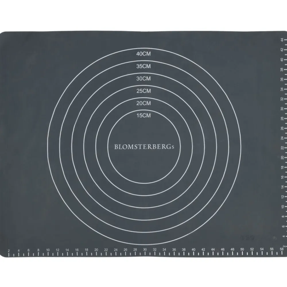 Genbrugeligt bageunderlag med mål fremstillet i grå silikone. Anvendes som underlag ved æltning og udrulning af fx mørdej, pizzadej, fondant, marcipan eller lign. Fungerer også godt som bolsjemåtte. Praktiske mål til hjælp ved udrulning af præcise udskæringer. Bageunderlaget er skridsikkert og let at tørre af efter brug.