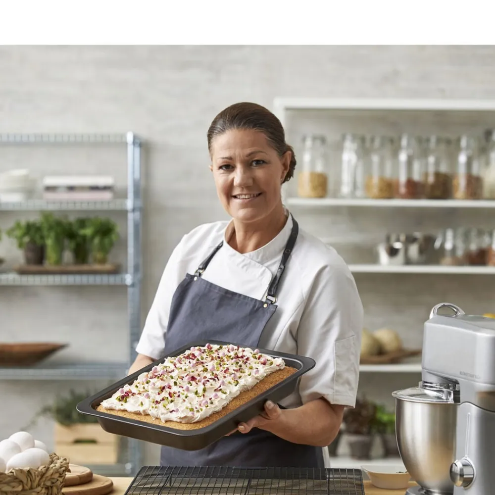 Smør formens indvendige side og bund med bagespray eller neutral olie ved bagning. Formen er fremstillet af ECCES stål, en europæisk produceret ståltype i høj kvalitet. Stålet er bygget op i to lag, først et støttende, forstærket bundlag og herefter endnu et lag for yderligere forstærkning. Det er meget let og fleksibelt, hvilket giver en mere ensartet overflade og bedre varmefordeling. Formen vaskes før brug første gang. Den keramiske belægning er fremstillet af råvarer, der ikke indeholder PFAS.