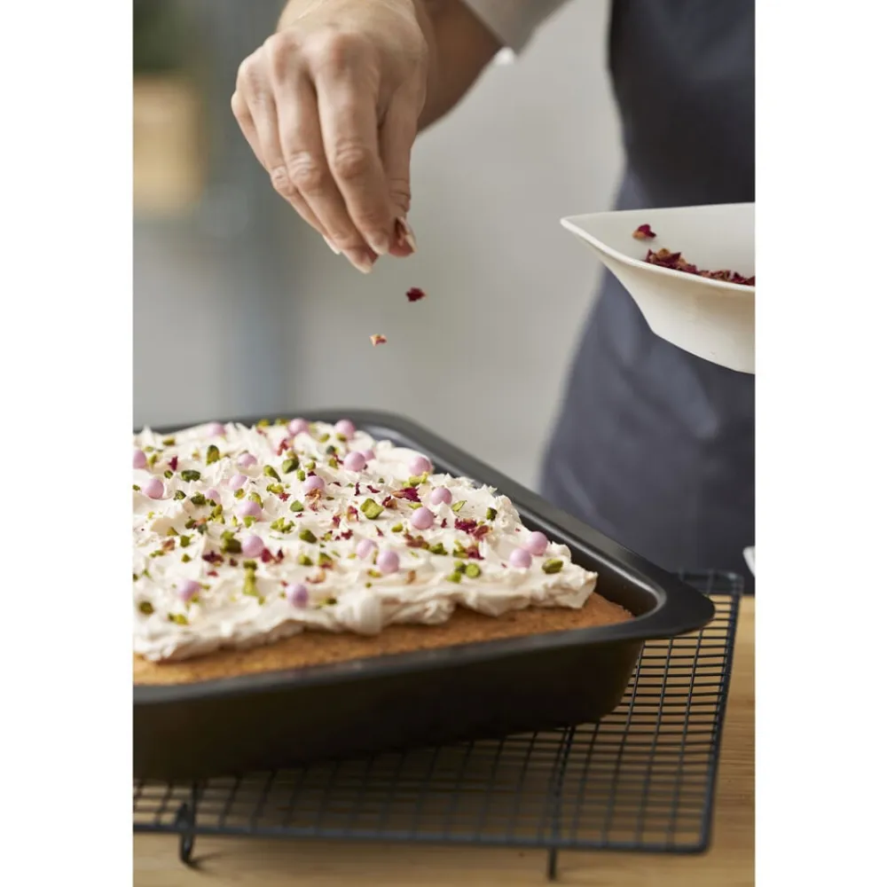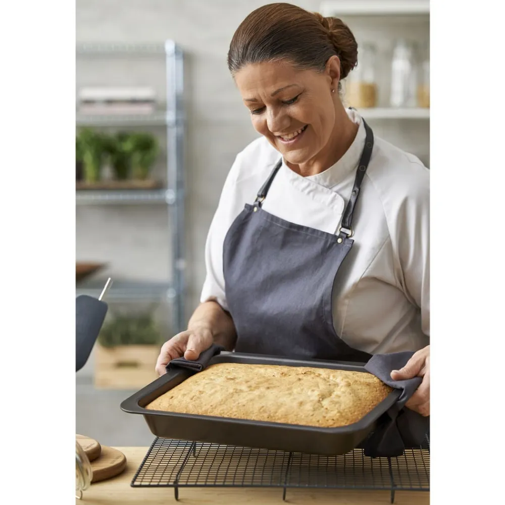 Stor bradepande i stål med non-stick-belægning, som slipper nemt og er let at rengøre. Bradepanden rummer 4,2 liter og anvendes til lækre, klassiske bradepandekager, som du vil forkæle familie og venner med. Du kan også bage et stort brød eller lasagne i bradepanden.