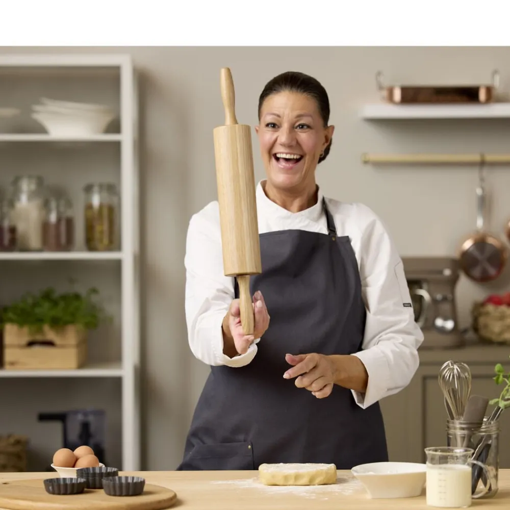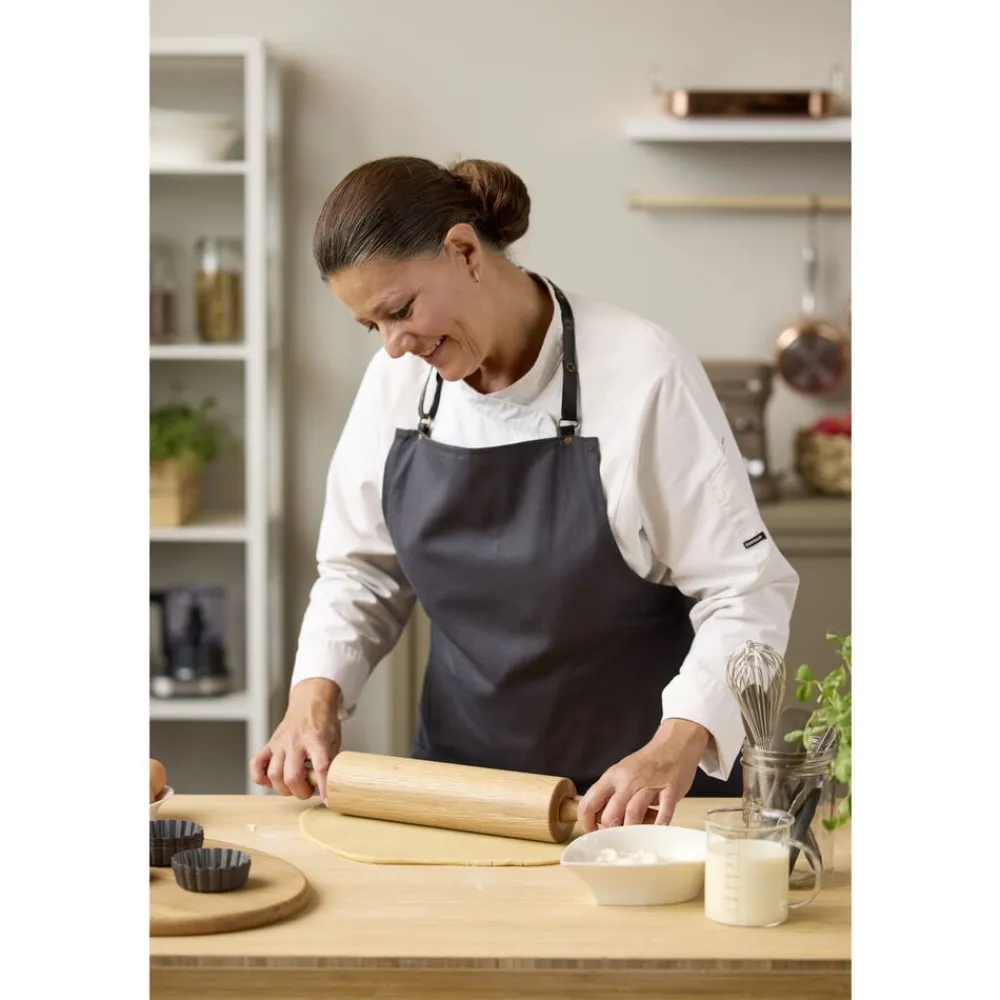 Kagerullen er udstyret med smarte kuglelejer, som sørger for, at den ruller let og lydløst. Brug den til det meste – fra småkager og tærter til pizza, knækbrød, marcipan og fondant. Trædelen på varen er FSC®-certificeret egetræ (FSC-C166612). Håndopvask anbefales.