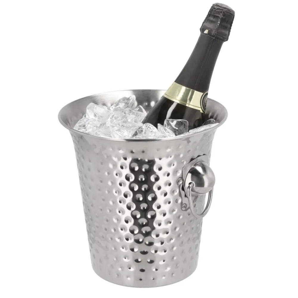 Denne elegante champagnekøler er fremstillet af rustfrit stål med en flot hamret overflade, der tilføjer et sofistikeret præg til enhver begivenhed. Med en kapacitet på 4 liter er den ideel til at holde din yndlingsflaske afkølet. De to håndtag sikrer nem transport, selv når køleren er fyldt med is. Perfekt til alle lejligheder, hvor stil og funktionalitet går hånd i hånd.