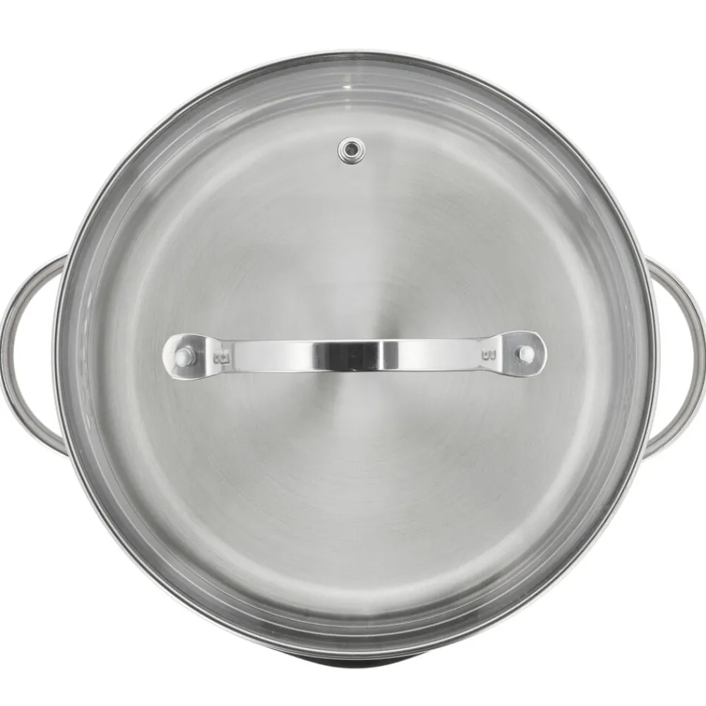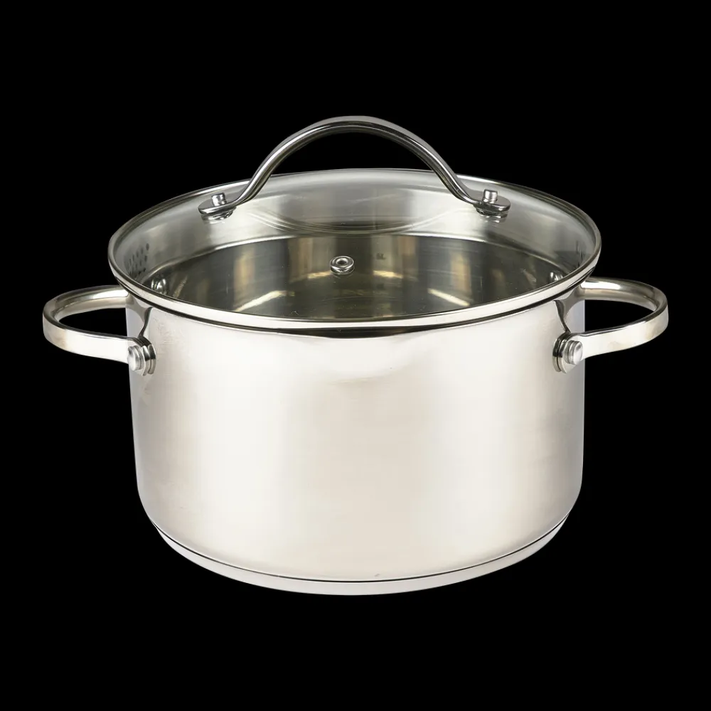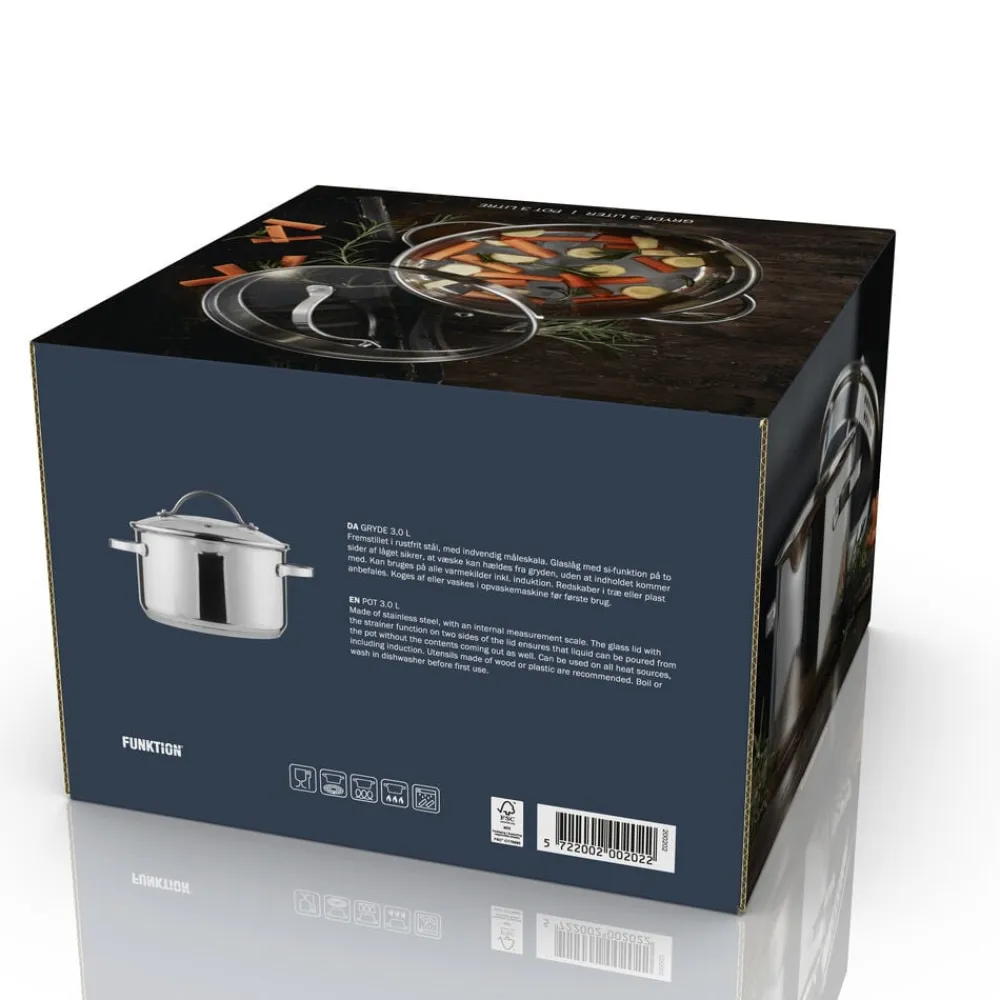 Glaslåg med si-funktion på to sider af låget, hvilket sikrer, at vand kan hældes fra gryden, uden at indhold kommer med.