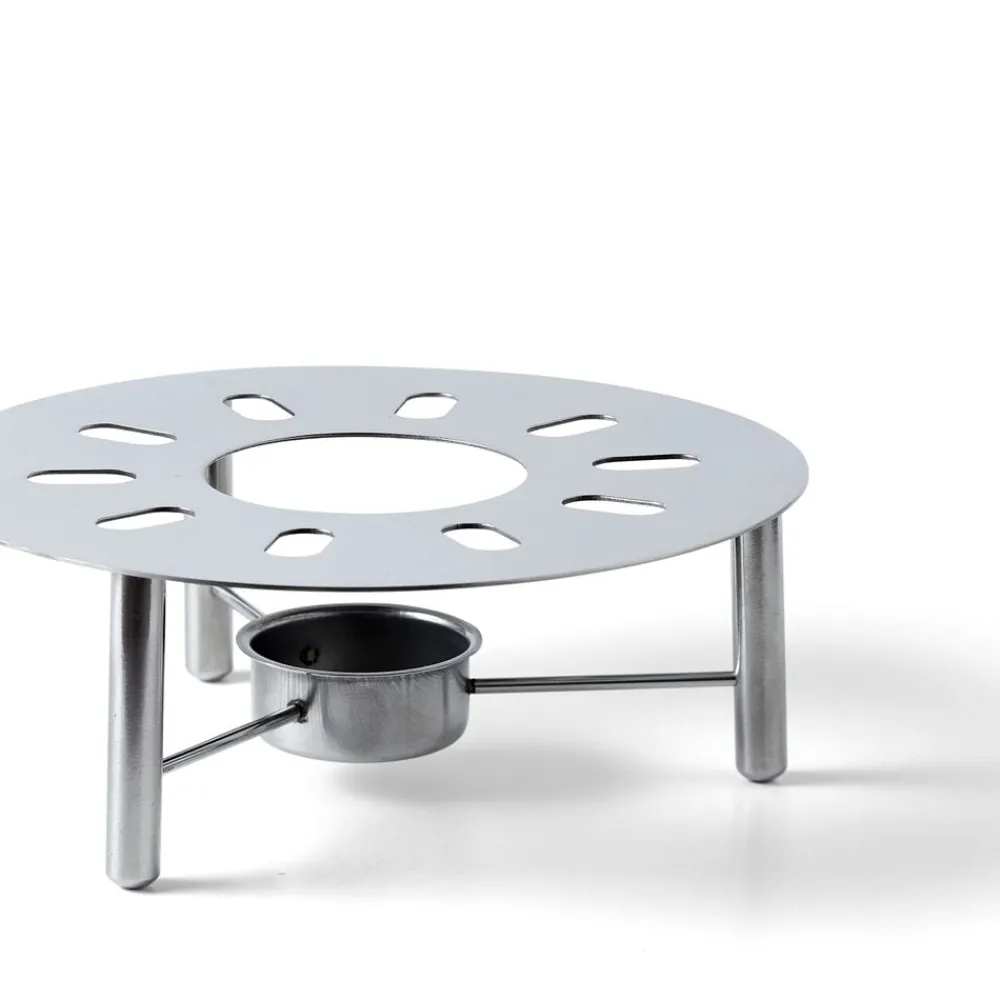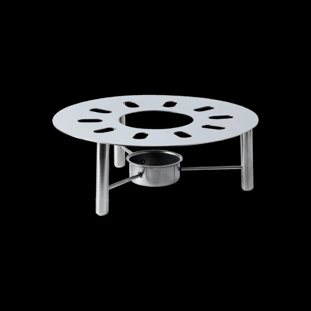 Grydevarmer i rustfrit stål til fyrfadslys. Holder saucer, supper og lignende varmt på spisebordet, når der serveres. Velegnet til alle slags gryder. Fyrfadslys medfølger ikke.