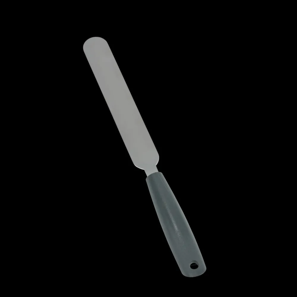 Paletten har hoved af stål og greb af PP. Tykkelsen på paletten gør den nem og smidig. Grebets form er behagelig at holde på og arbejde med.