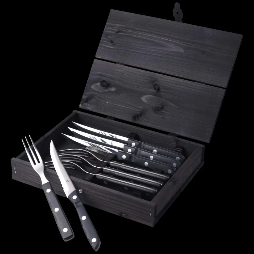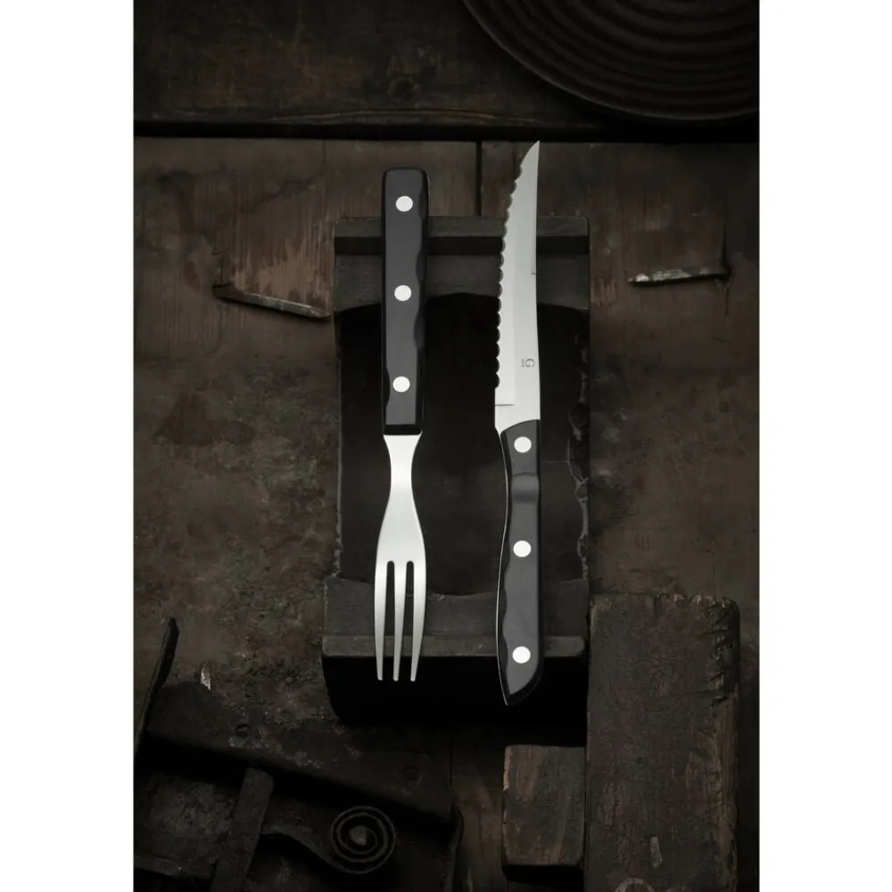 Old Farmer er et smukt og rustikt grillbestik i rustfrit stål. Old Farmer Black har skaft i POM-plast i høj kvalitet, mens Old Farmer Classic har skaft i ædeltræslaminat. Bestikket er formgivet af Bent Severin, industriel designer, der arbejdede med perfektion i alle materialer. Han blev anset for en af Danmarks førende billedhuggere og designere med stor indflydelse i den kreative verden.
