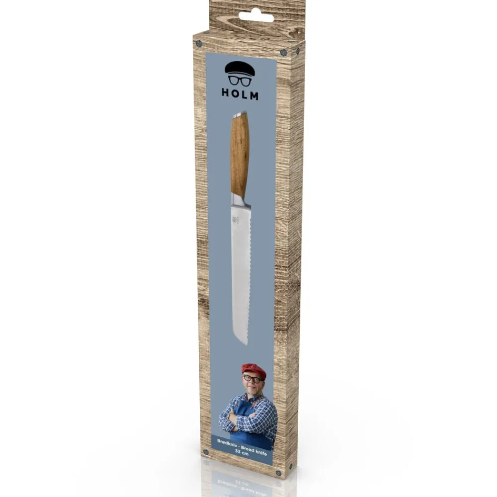 HOLMs knivserie indeholder en række lækre knive. De flot rundede skafter, der ligger behageligt i hånden, er af akacietræ med virkeligt smukke og karakteristiske åretegninger og er afsluttet med en elegant stålkappe for enden af skaftet. Bladene er af rustfrit stål i høj kvalitet. Knivene skal vaskes i hånden med varmt vand og sæbe, også før første brug.