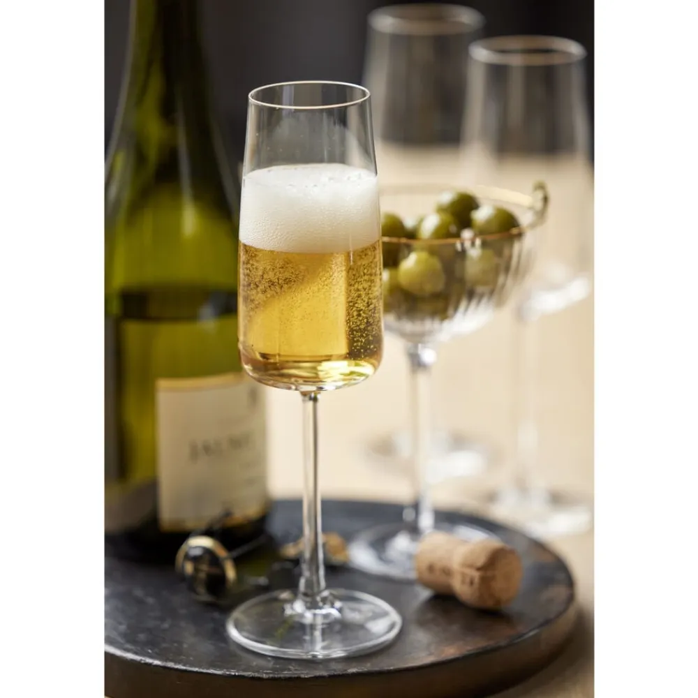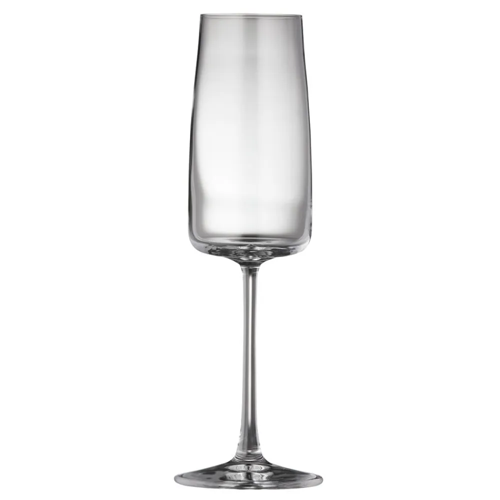 4 smukke champagneglas fra glasserien Zero fra Lyngby Glas. Nyd den perlende champagne og glassenes fine elegance. Tåler opvaskemaskine. 30 cl, højde 23,5 cm.