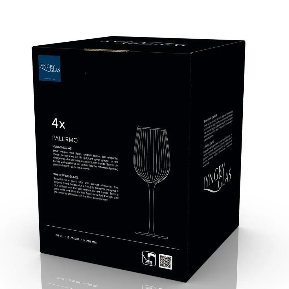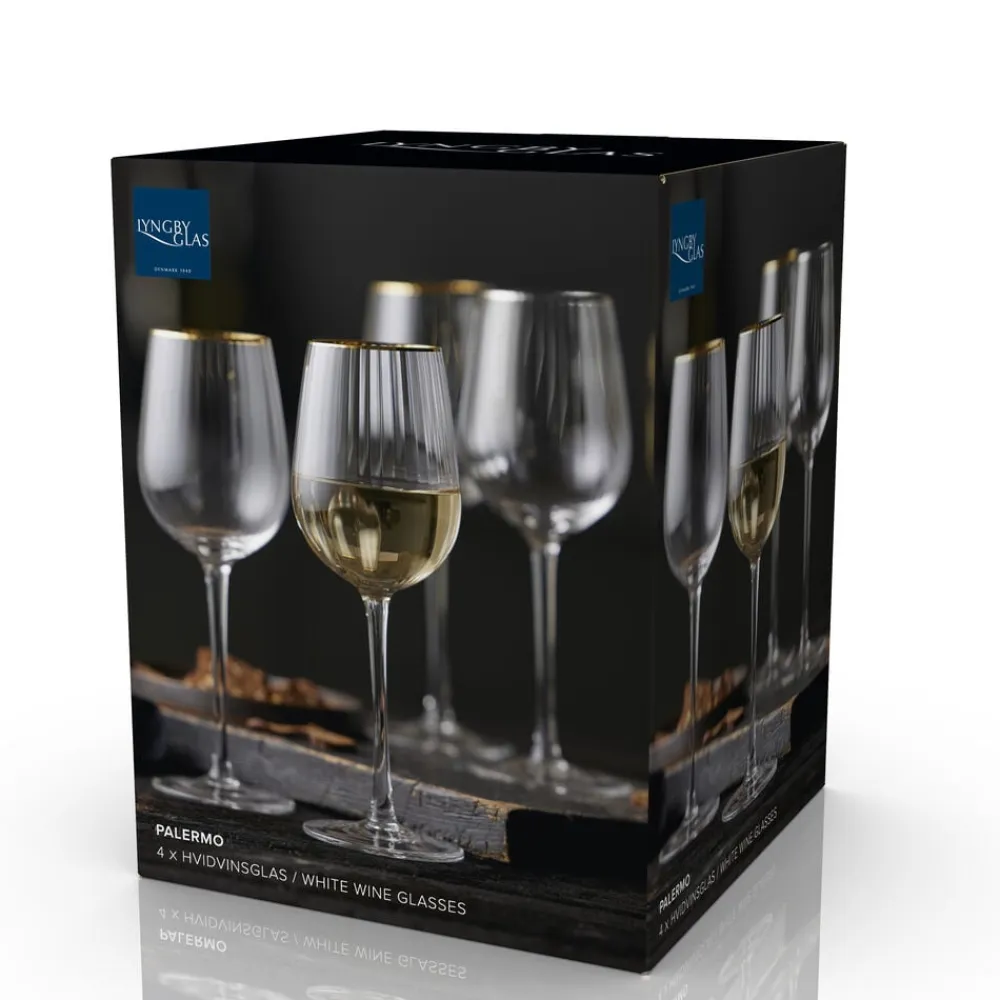 Palermo-glassene er mundblæst og hånddekoreret. Det kan betyde, at er der lidt forskel i størrelserne, ligesom glastykkelsen også kan variere. Små bobler i glasset er uundgåelige og en del af udtrykket. Guldkanten er påført i hånden og kan derfor variere fra glas til glas. Det er charmen ved håndlavede glas som Palermo-serien.