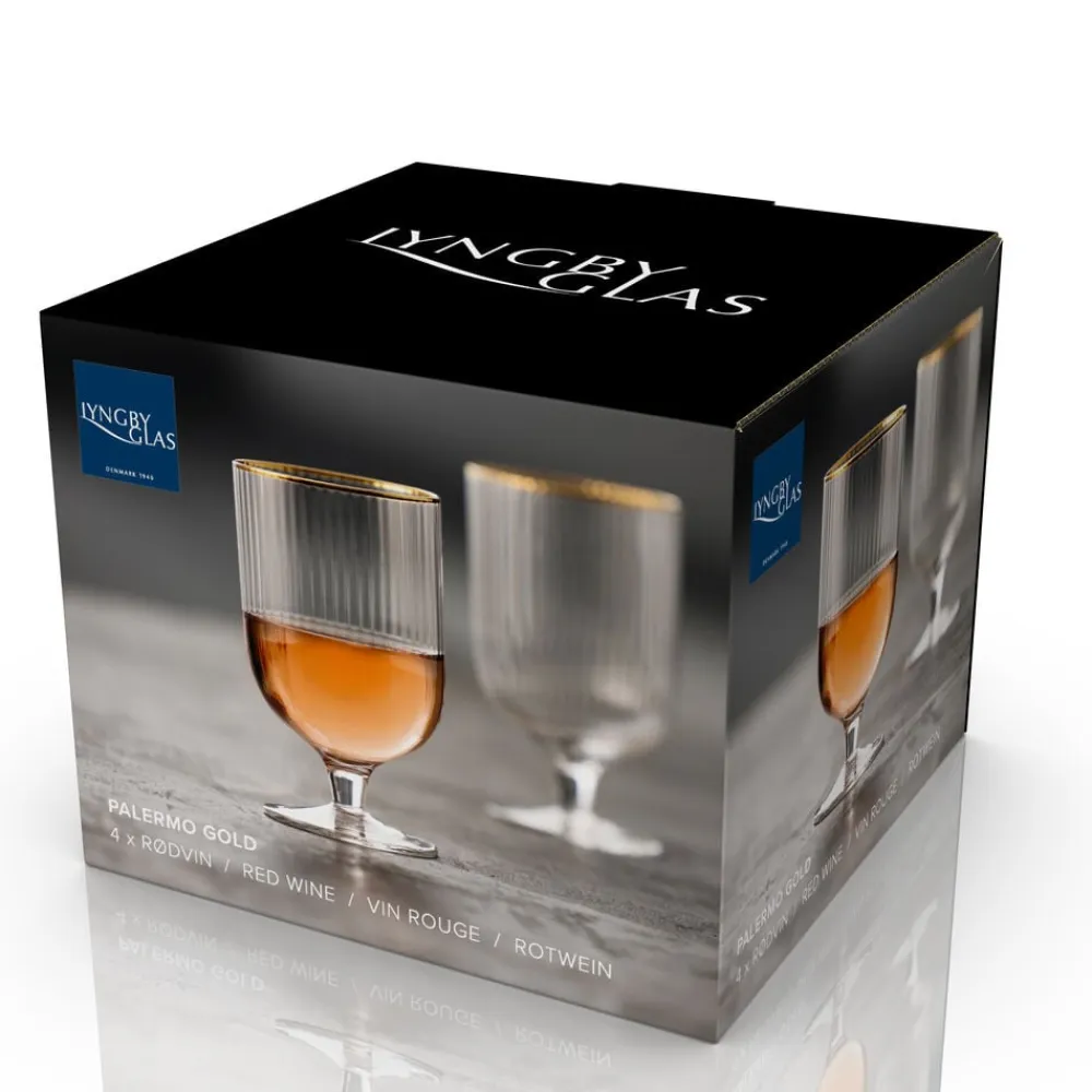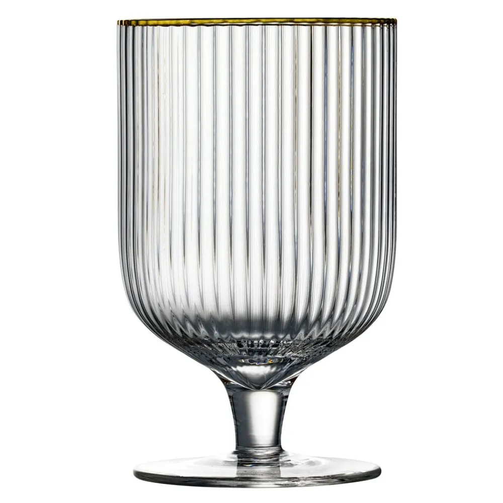 Smukt vinglas med bløde, rundede former. Det elegante, riflede design med en fin guldkant giver glasset et flot vintagelook, der samtidig afspejler tidens trends. Server din bedste vin i glasset og lad de fine facetter reflektere lyset og glassets indhold på smukkeste vis.
