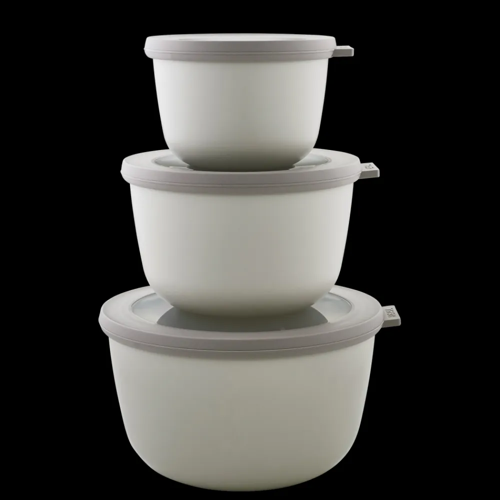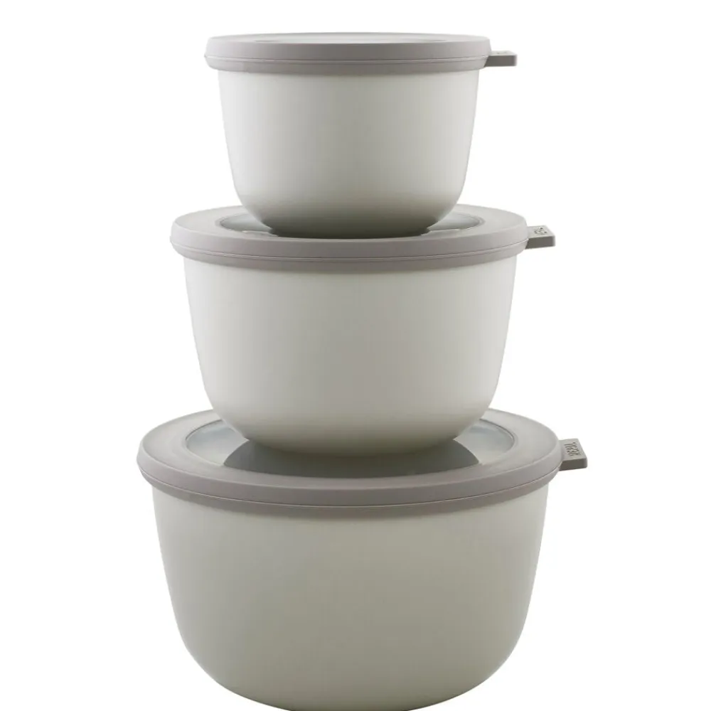 Mepal Cirqula opbevarings- og serveringsskålesæt – rummelig, praktisk og dekorativ i kølige, nordiske farvetoner. Sæt bestående af 500 ml, 1000 ml og 2000 ml.