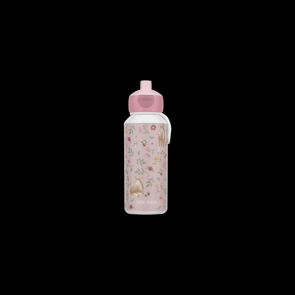 Mepal drikkeflaske med Fairy garden-motiv. Den kendte, robuste drikkeflaske rummer 400 ml, har praktisk silikonestrop og et smart pop-up system med mundstykke, der nemt udløses ved tryk på en knap og samtidig er let at skille ad og rengøre.