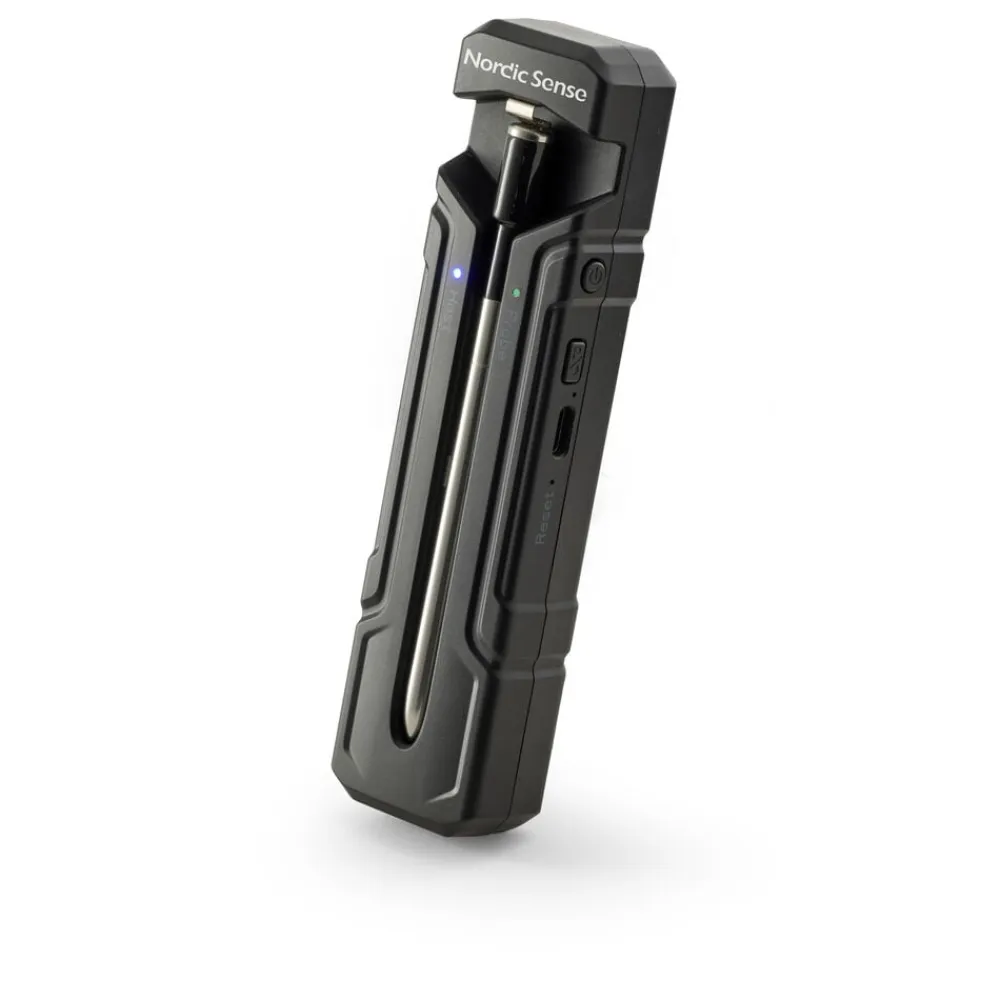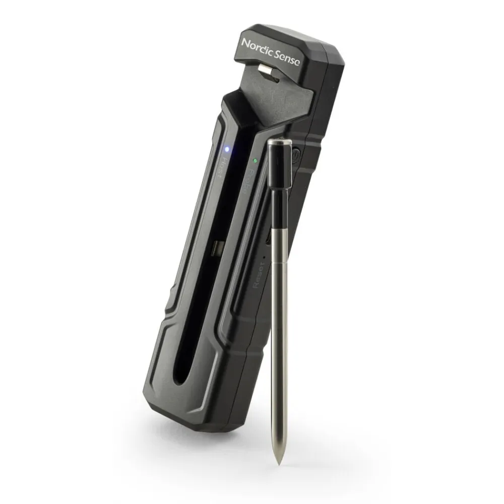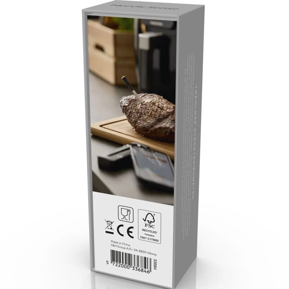 Dette trådløse stegetermometer giver nøjagtige målinger af både kerne- og lufttemperatur. Sæt nålen i kødet og styr tilberedningen via opbevaringsboksen og appen. Her kan du overvåge temperatur, tid og alle andre data, mens du underholder gæsterne og forbereder det sidste til middagen. Stegetermometeret har en rækkevidde på op til 100 meter og måler kernetemperatur fra -20 °C til 100 °C og lufttemperatur fra 0 °C til 270 °C med en præcision på +/- 1 °C. Vandtæt sensor gør rengøringen under vandhanen lettere.