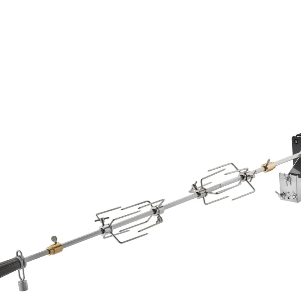 Sekskantet spyd af massivt rustfrit stål kan holde en vægt på op til 10 kg. 4 robuste holdere til at fæstne kødet. Inkl. elmotor med strøm eller batteridrift. Batterier medfølger ikke. Strømforsyning 230V / 50 Hz til elmotor inkluderet. Velegnet til følgende modeller: MAGNUM G4, VIDERO G4 / G6 modeller.