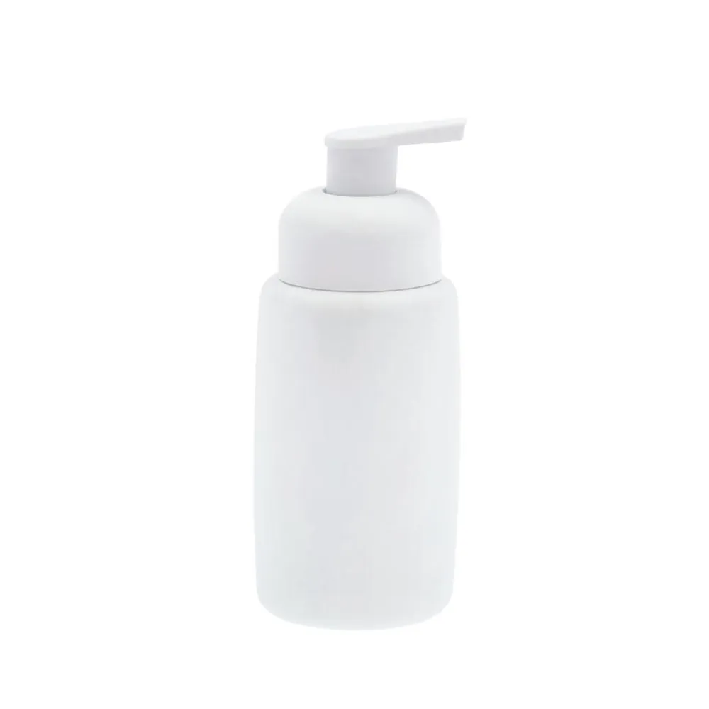 Serien har soft rubbercoating all over, også på sæbedispensertud og toiletbørsteskaft. Kruset er med lækker kontrastfarvet, blank glasur indvendigt.