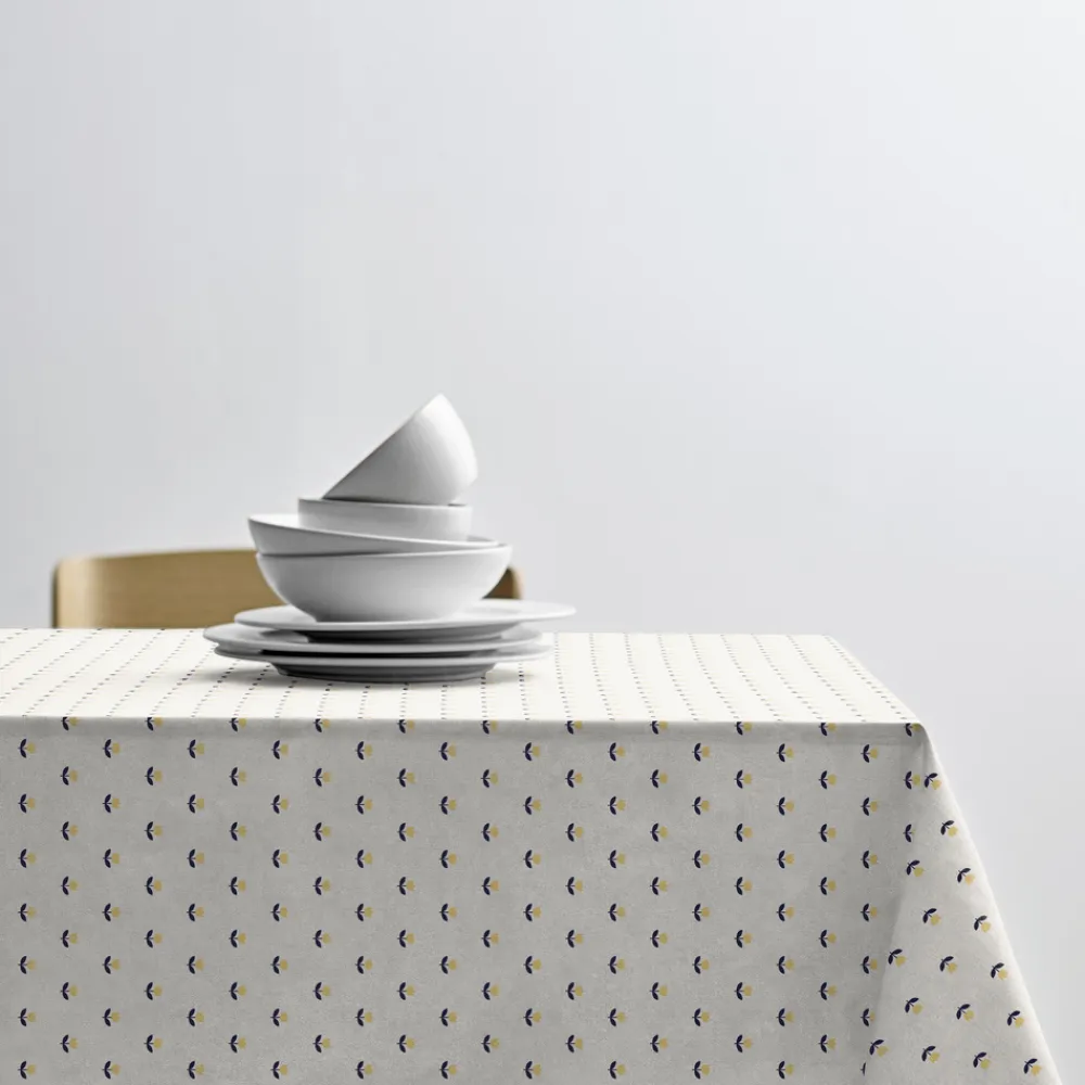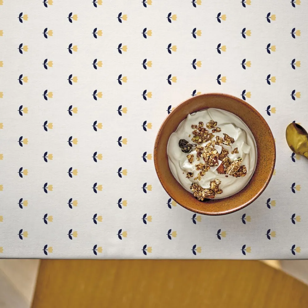 Med et charmerende print af små tulipaner i et tæt mønster tilføjer denne dug en herlig vintage-stemning og forfriskende coolness til din spisestue.